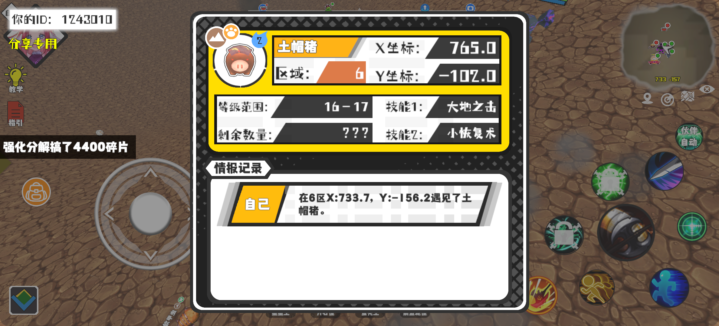 幸运时刻分享! 【魔物异常出没】12月17日下午4点 - 土帽猪【强度2】 【6区】 【X:765.0, Y:-102.0】#超数据世界