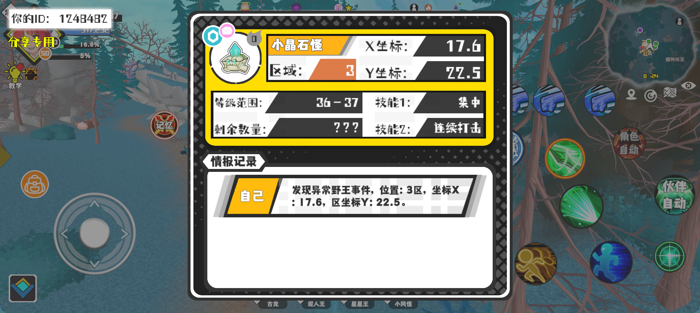 幸运时刻分享! 【野王异常出没】12月17日下午6点 - 小晶石怪【强度0】 【3区】 【X:17.6, Y:22.5】#超数据世界