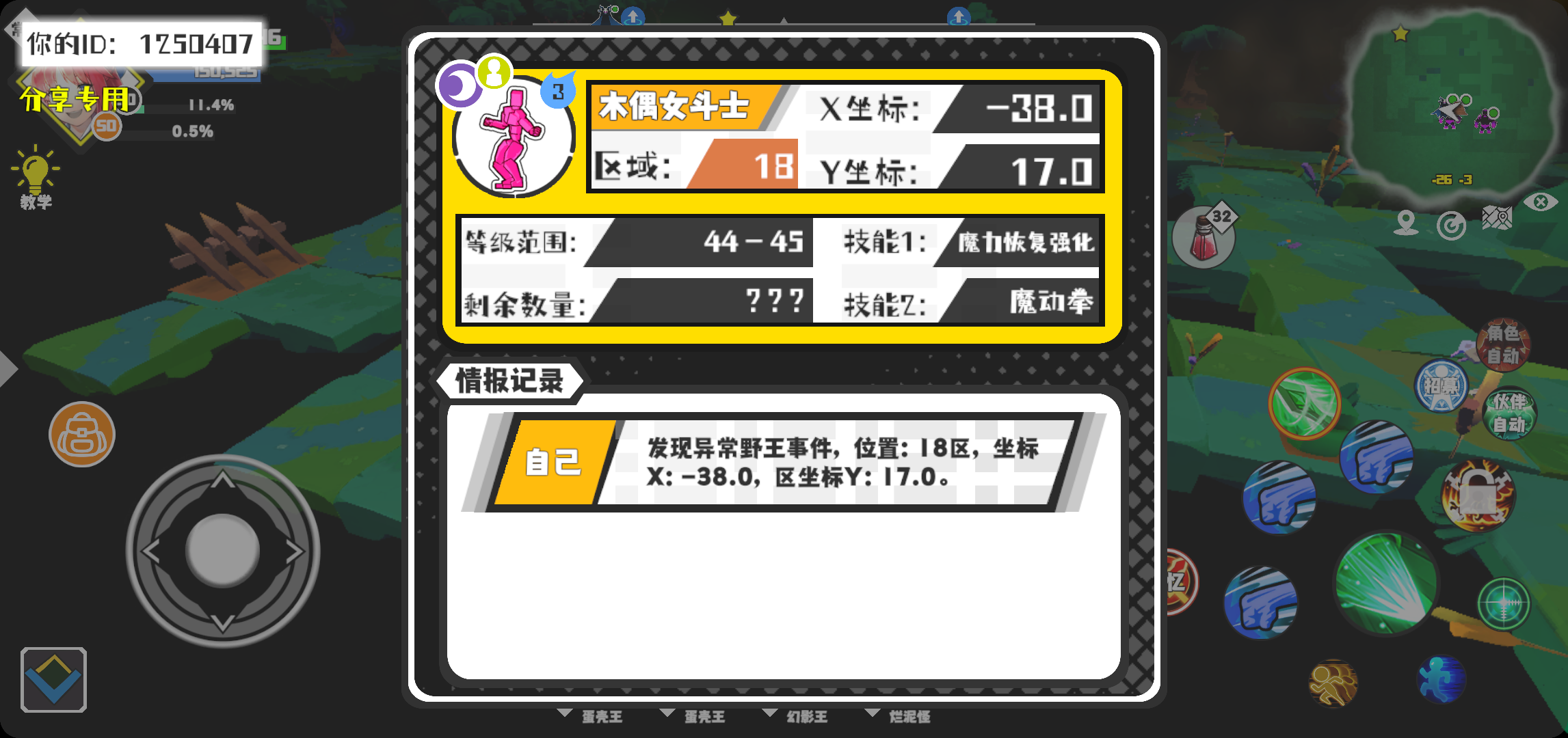 幸运时刻分享! 【野王异常出没】12月14日上午7点 - 木偶女斗士【强度3】 【18区】 【X:-38.0, Y:17.0】#超数据世界