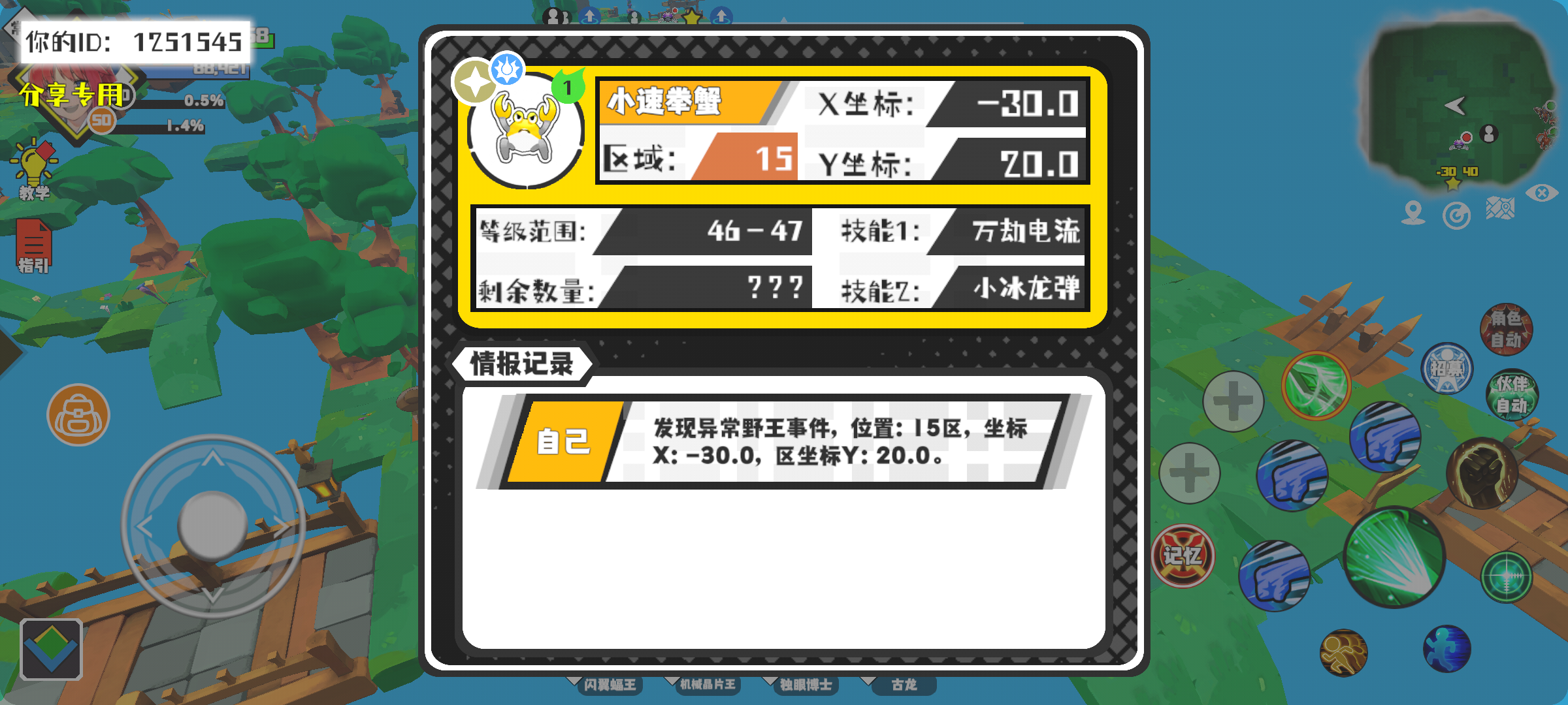 幸运时刻分享! 【野王异常出没】12月13日下午6点 - 小速拳蟹【强度1】 【15区】 【X:-30.0, Y:20.0】#超数据世界
