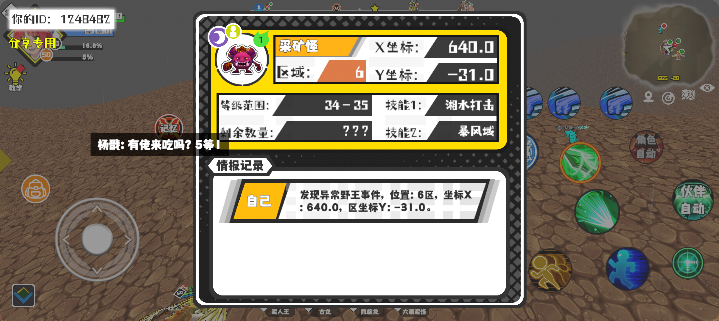 幸运时刻分享! 【野王异常出没】12月13日下午3点 - 采矿怪【强度1】 【6区】 【X:640.0, Y:-31.0】#超数据世界