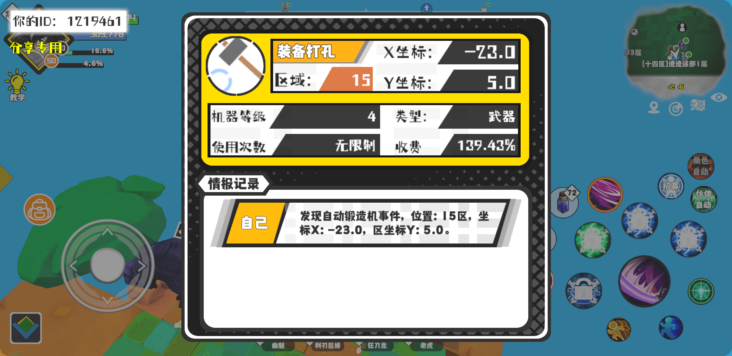 幸运时刻分享! 【自动锻造机】12月12日下午7点 - 装备打孔【4级机器】 【15区】 【X:-23.0, Y:5.0】#超数据世界