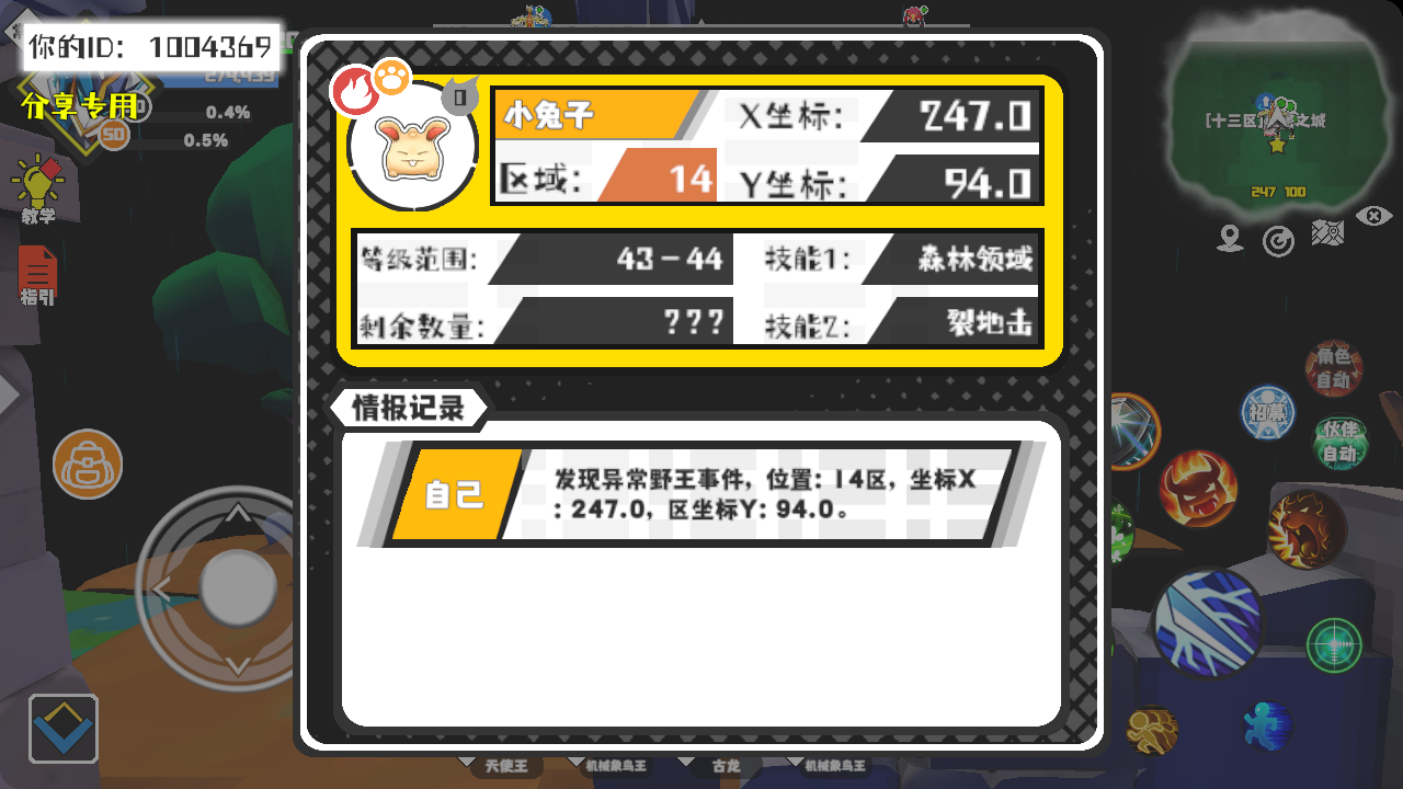 幸运时刻分享! 【野王异常出没】12月12日下午9点 - 单眼泥怪【强度1】 【4区】 【X:485.0, Y:-161.0】#超数据世界