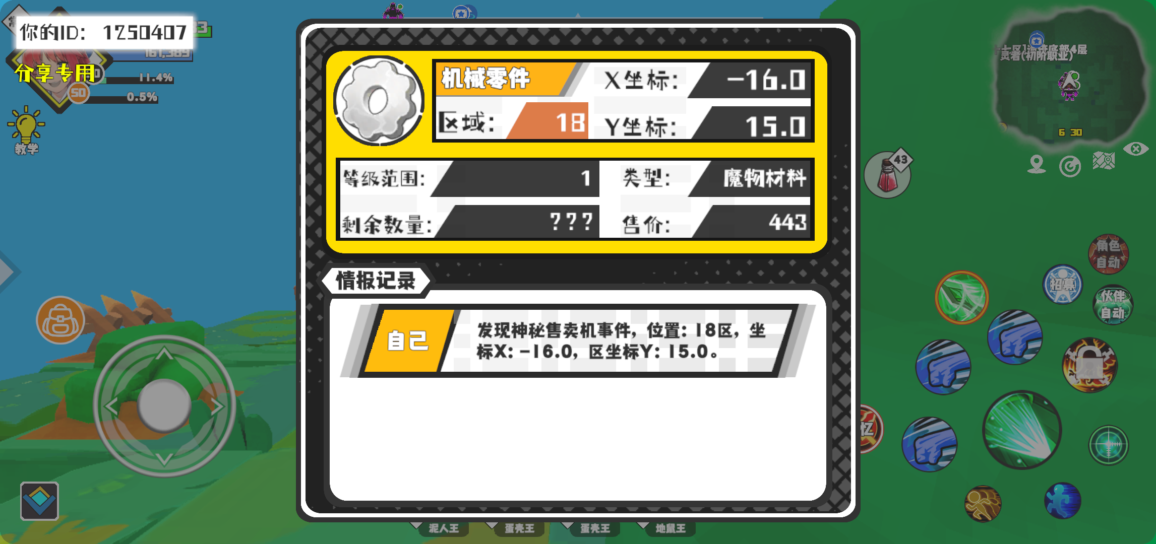 幸运时刻分享! 【神秘售卖机】12月11日下午10点 - 机械零件【1级 】【稀有度:稀有】 【18区】 【X:-16.0, Y:15.0】#超数据世界