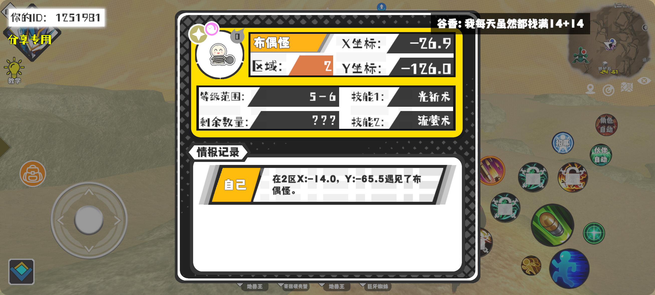 幸运时刻分享! 【魔物异常出没】12月11日下午10点 - 布偶怪【强度0】 【2区】 【X:-26.9, Y:-126.0】#超数据世界