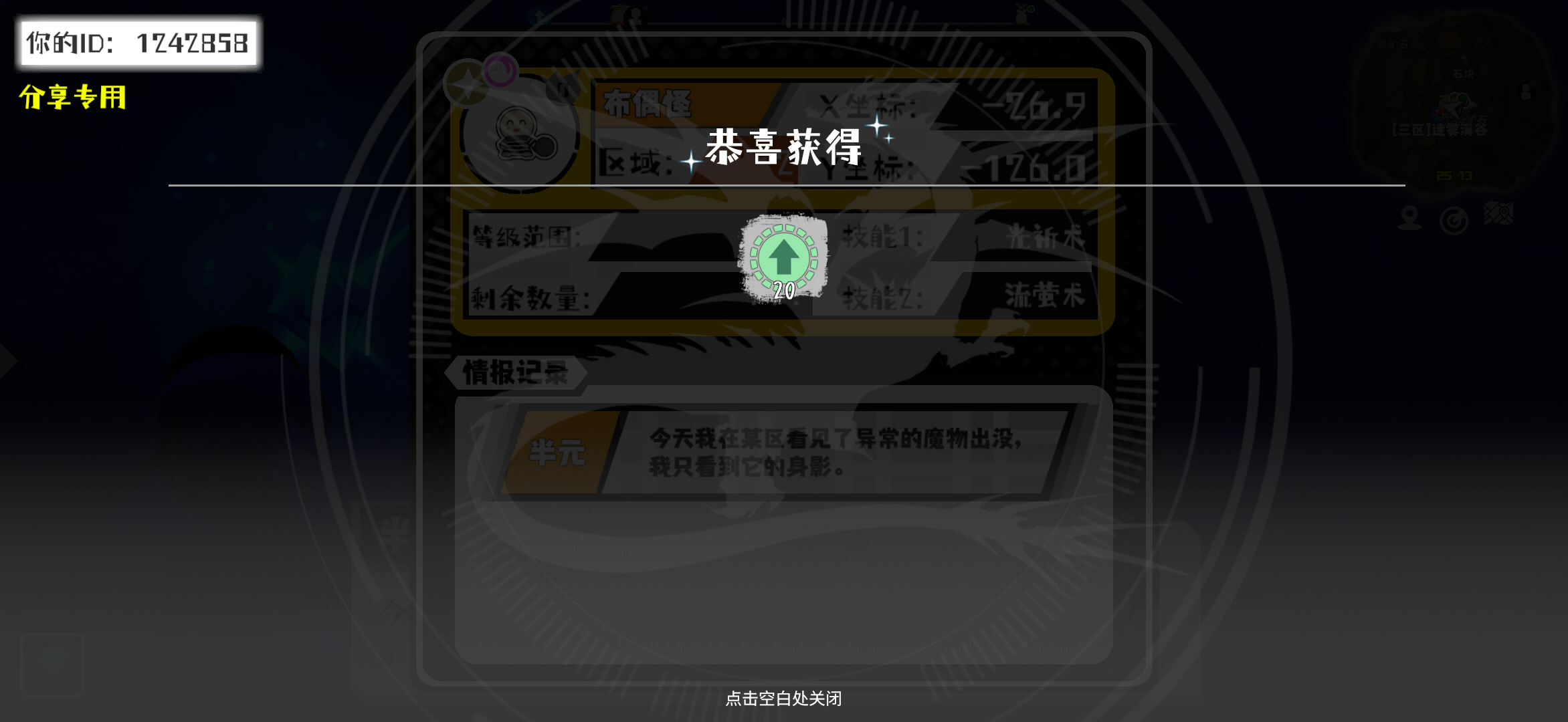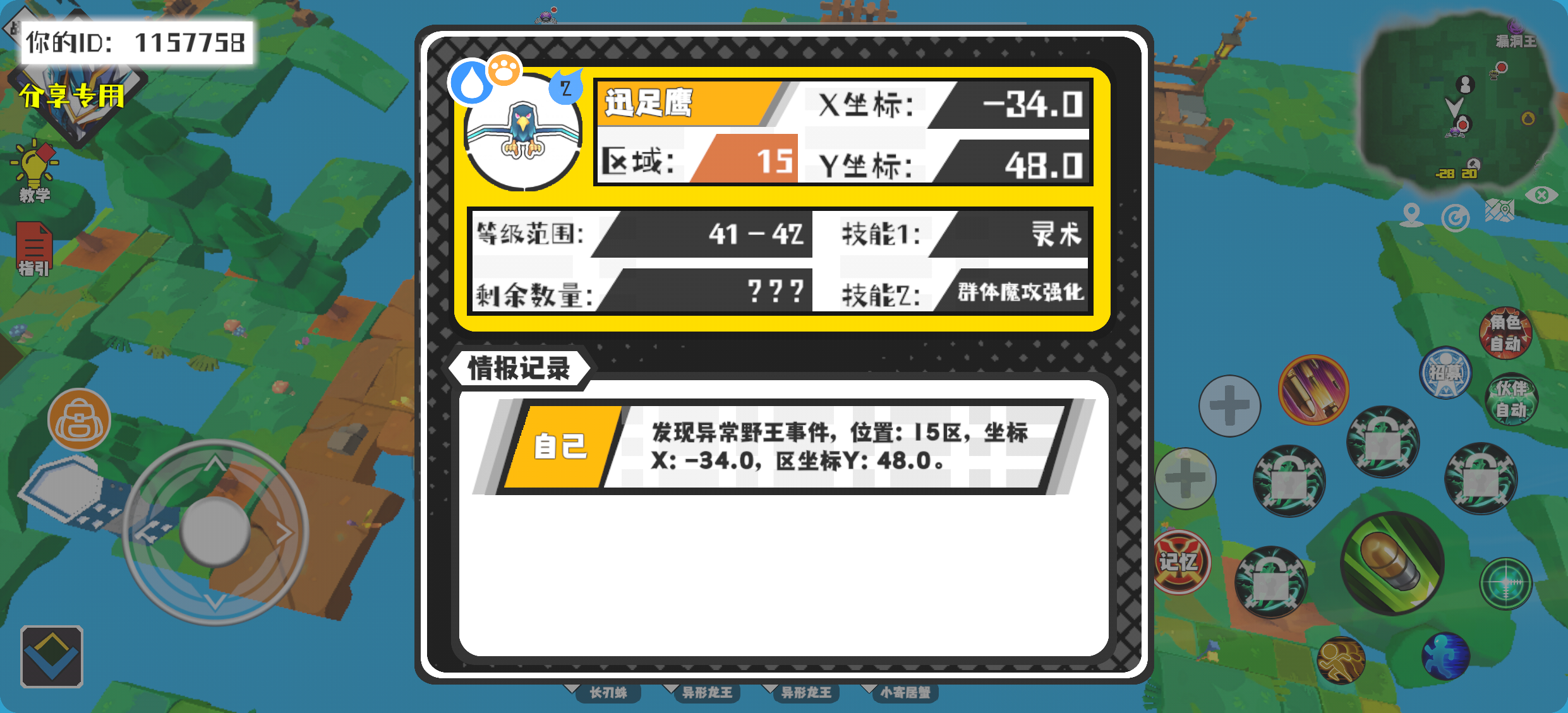 幸运时刻分享! 【野王异常出没】12月11日下午10点 - 迅足鹰【强度2】 【15区】 【X:-34.0, Y:48.0】#超数据世界
