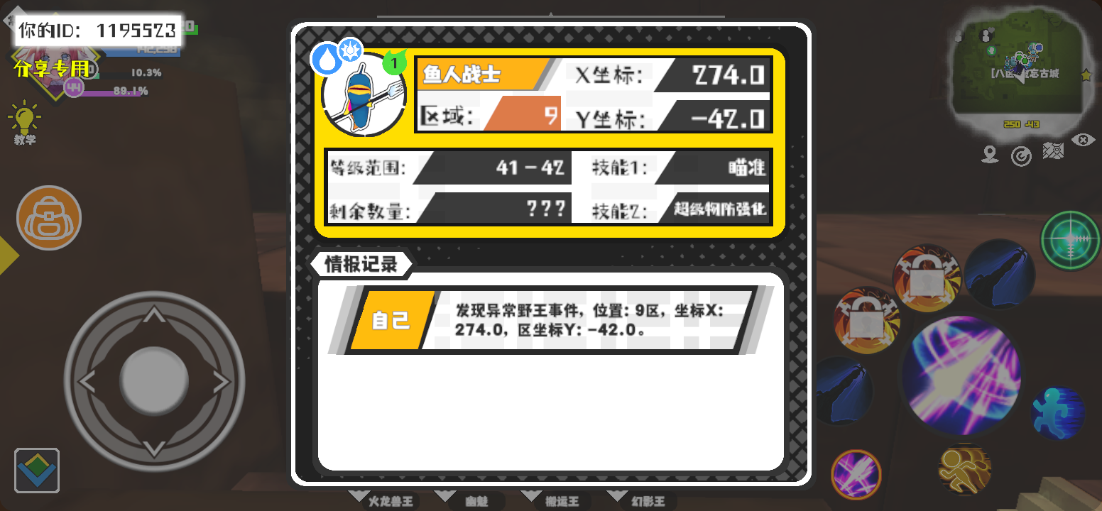 幸运时刻分享! 【野王异常出没】12月11日下午1点 - 鱼人战士【强度1】 【9区】 【X:274.0, Y:-42.0】#超数据世界