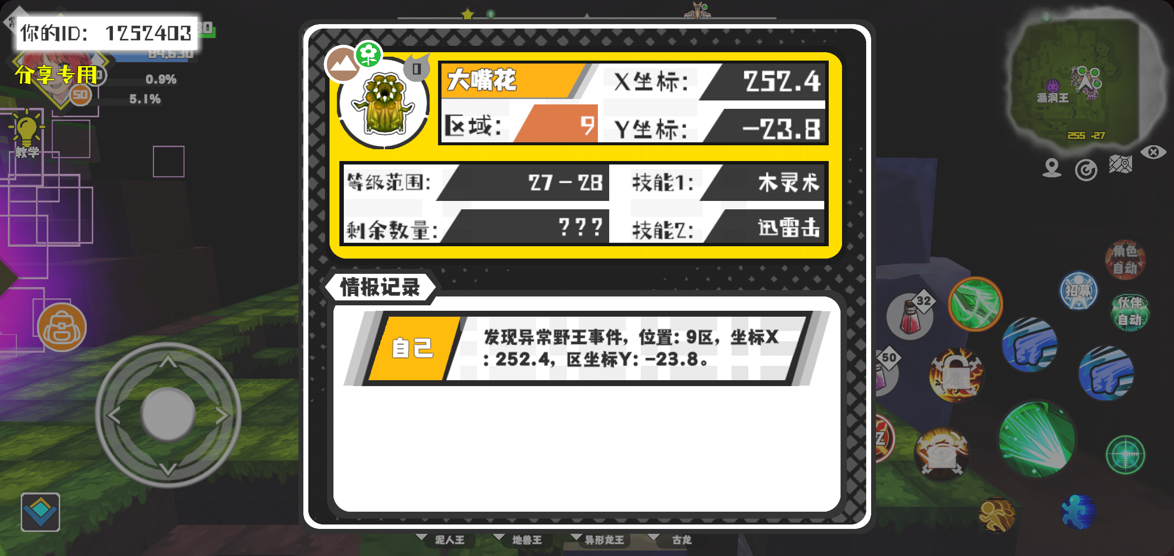 幸运时刻分享! 【野王异常出没】12月11日下午8点 - 大嘴花【强度0】 【9区】 【X:252.4, Y:-23.8】#超数据世界