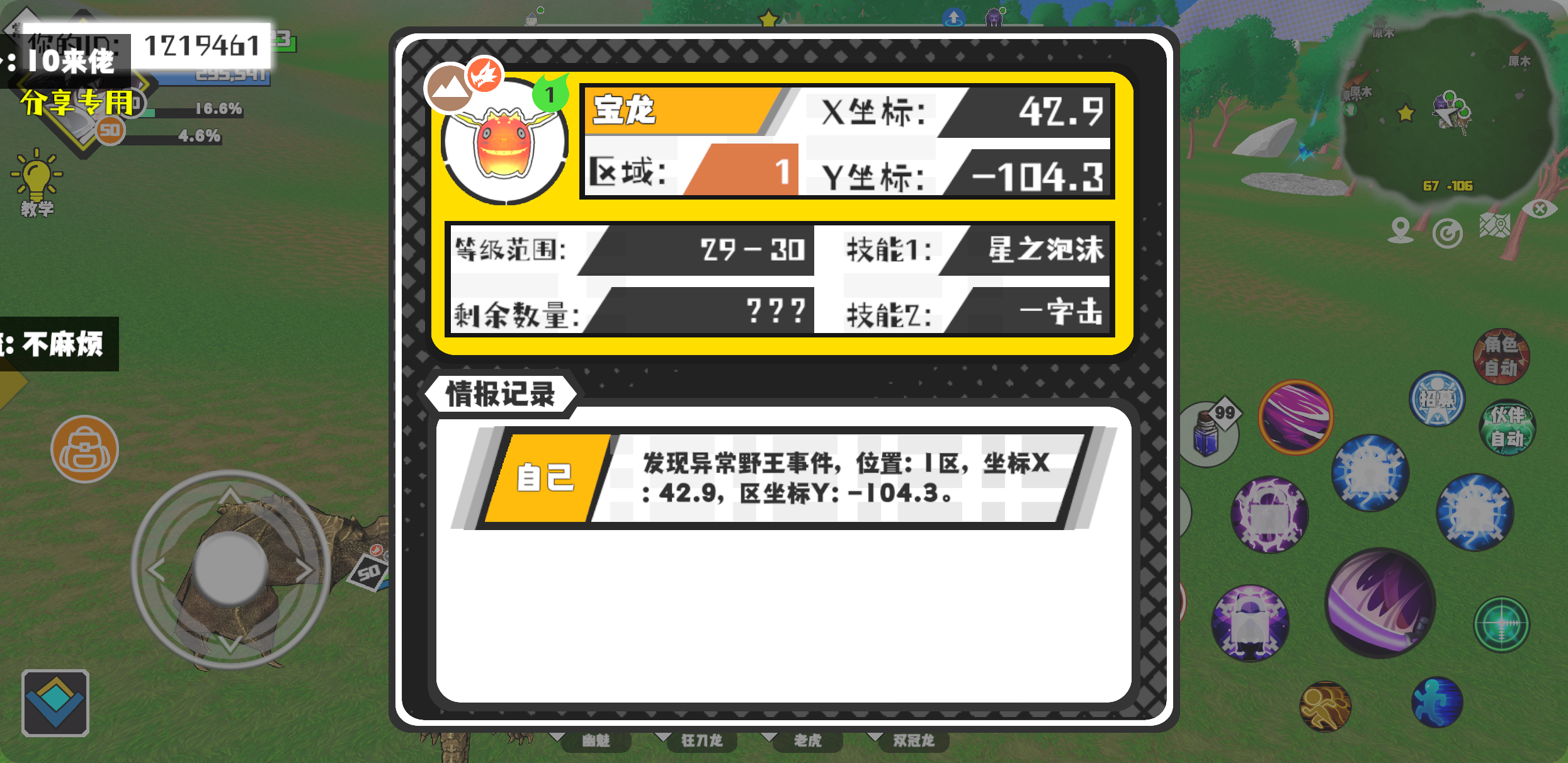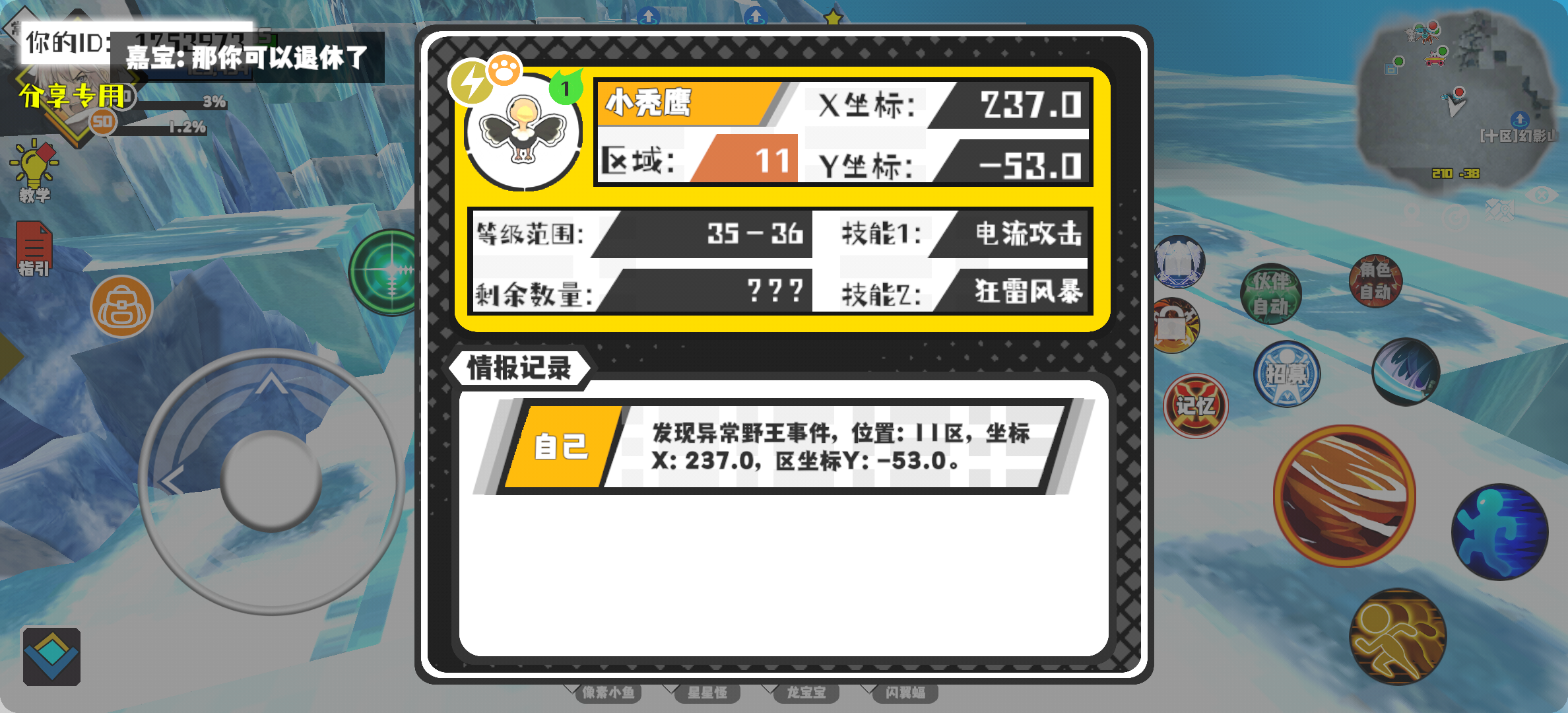 幸运时刻分享! 【野王异常出没】12月10日下午8点 - 小秃鹰【强度1】 【11区】 【X:237.0, Y:-53.0】#超数据世界