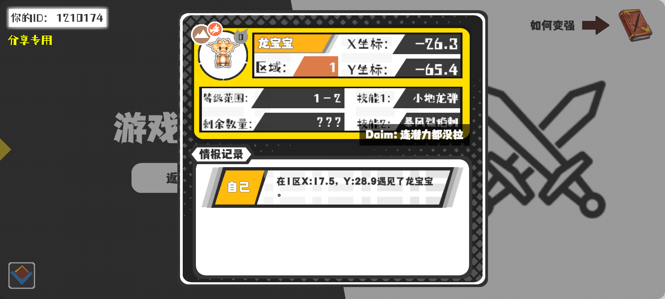 幸运时刻分享! 【魔物异常出没】12月8日下午10点 - 龙宝宝【强度0】 【1区】 【X:-26.3, Y:-65.4】#超数据世界