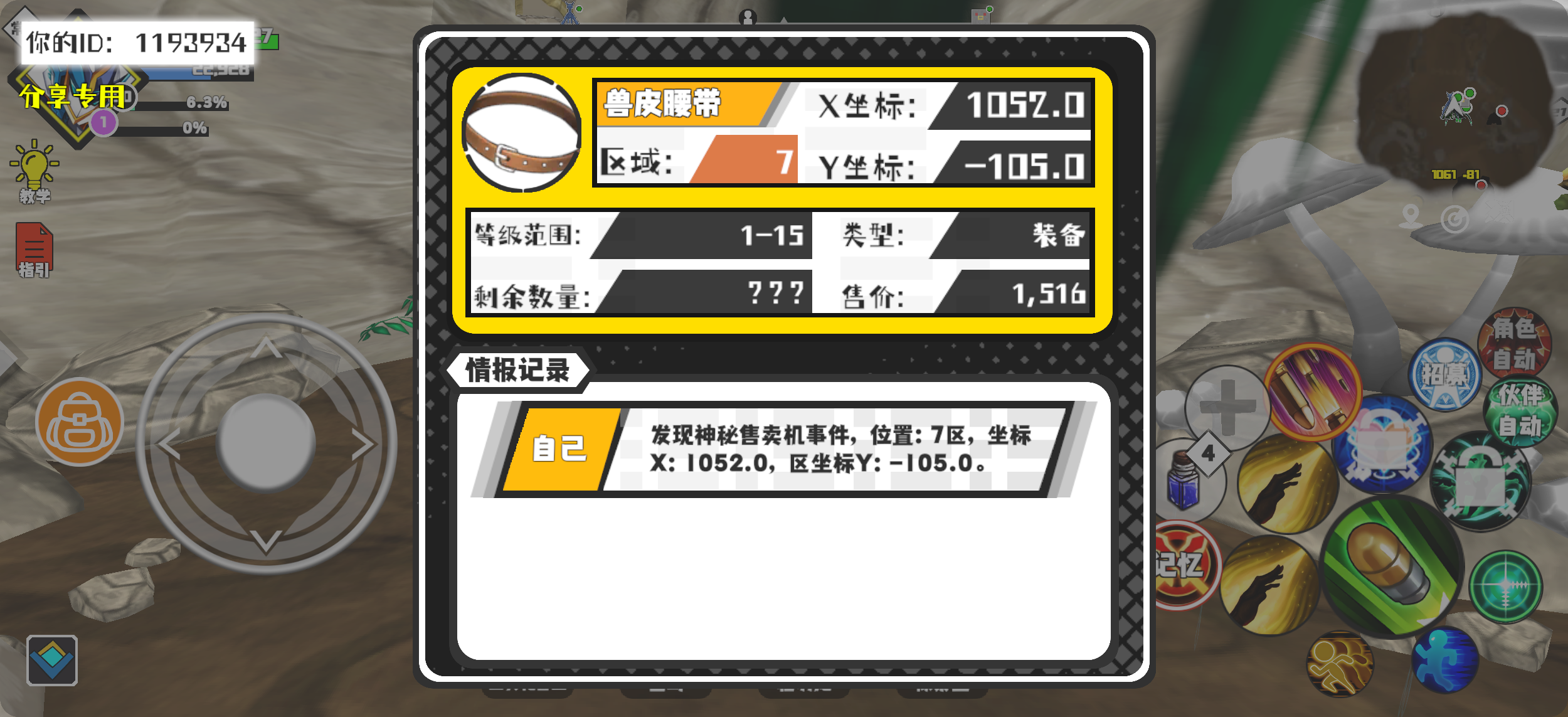 #超数据世界 幸运时刻分享! 【神秘售卖机】12月9日上午2点 - 兽皮腰带【1-15级 】【稀有度:精良】 【7区】 【X:1052.0, Y:-105.0】