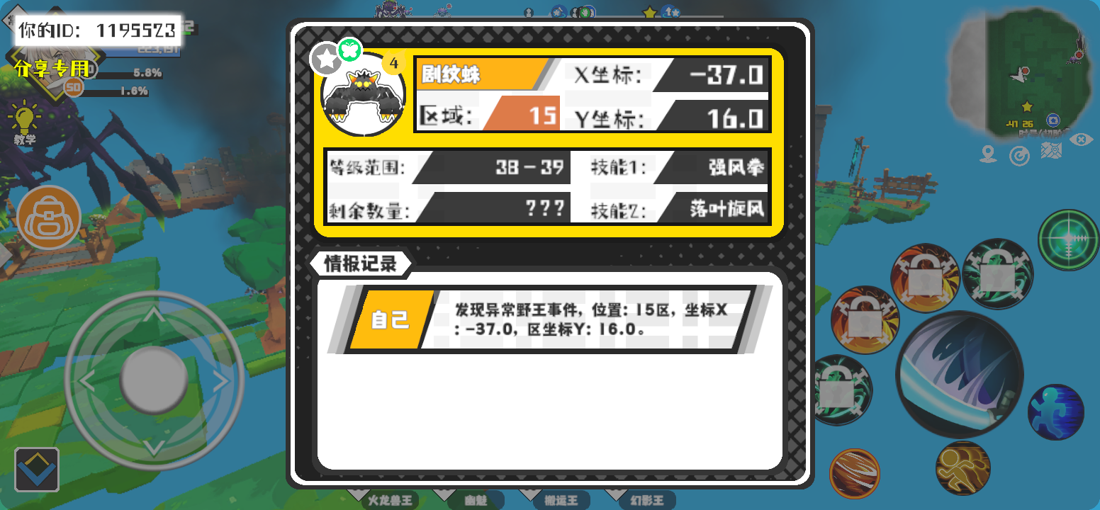 幸运时刻分享! 【野王异常出没】12月9日上午1点 - 剧纹蛛【强度4】 【15区】 【X:-37.0, Y:16.0】#超数据世界