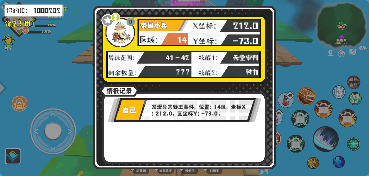 幸运时刻分享! 【野王异常出没】12月8日上午8点 - 方械枪手【强度1】 【3区】 【X:28.6, Y:37.5】#超数据世界
