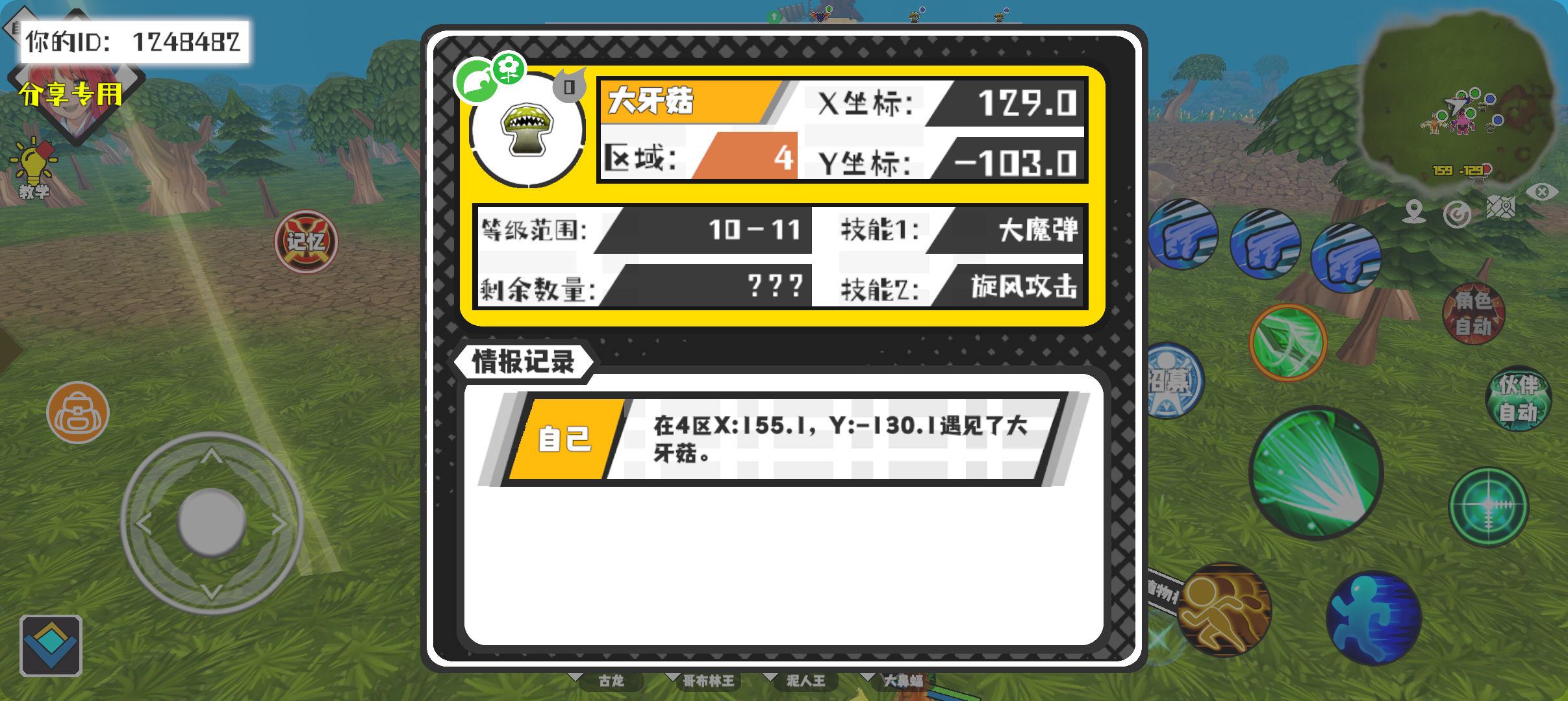 幸运时刻分享! 【魔物异常出没】12月8日上午10点 - 大牙菇【强度0】 【4区】 【X:129.0, Y:-103.0】#超数据世界