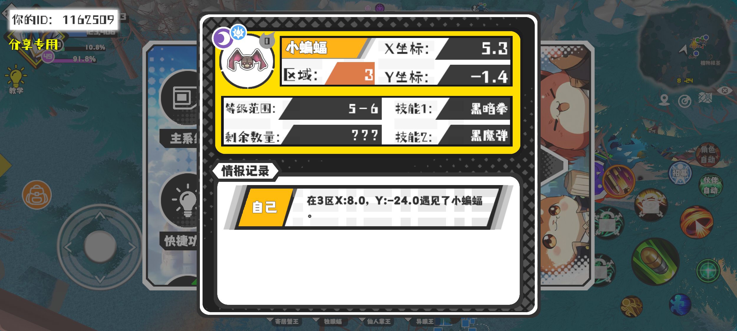 幸运时刻分享! 【魔物异常出没】12月7日上午8点 - 小蝙蝠【强度0】 【3区】 【X:5.3, Y:-1.4】#超数据世界