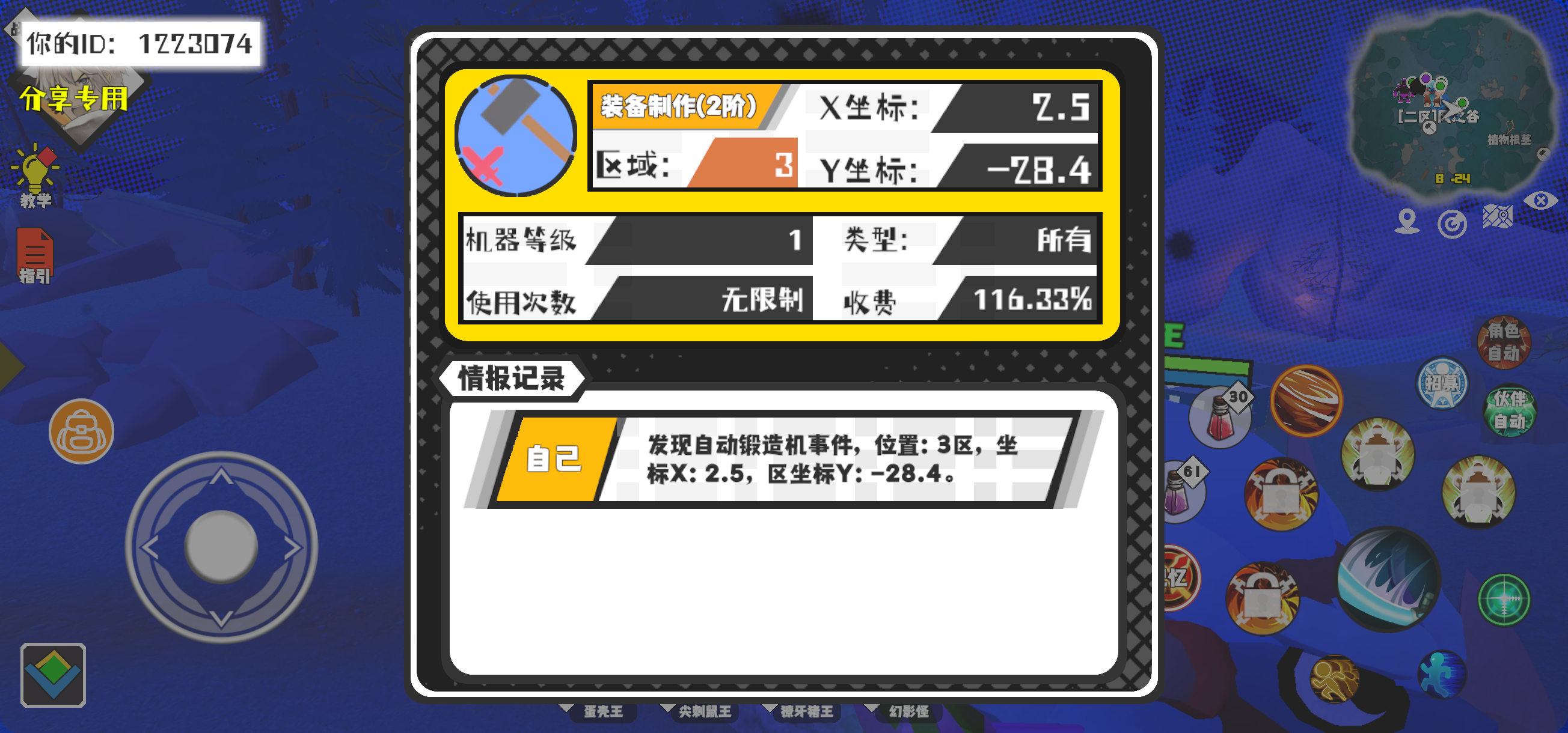 幸运时刻分享! 【自动锻造机】12月8日下午12点 - 装备制作(2阶)【1级机器】 【3区】 【X:2.5, Y:-28.4】#超数据世界 #超数据世界