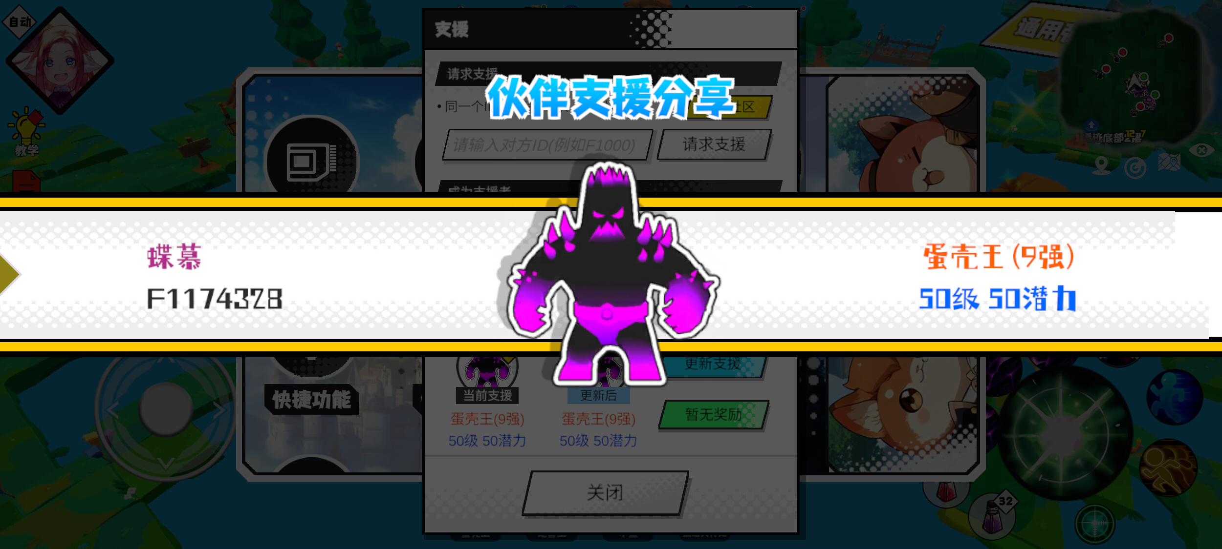支援者:蝶慕(F1174328)如果遇到困难,可以召唤我的宠物帮忙,召唤方法是进入地图后点击左下角的手机功能>支援>输入【F1174328】>就可以召唤我的宠物!我的宠物是蛋壳王(9强)50级 50潜力技能1:黑魔破技能2:黑魔破技能3:黑魔破技能4:黑魔破智慧配点:245初阶职业:鬼咒进阶职业:海神#超数据世界
