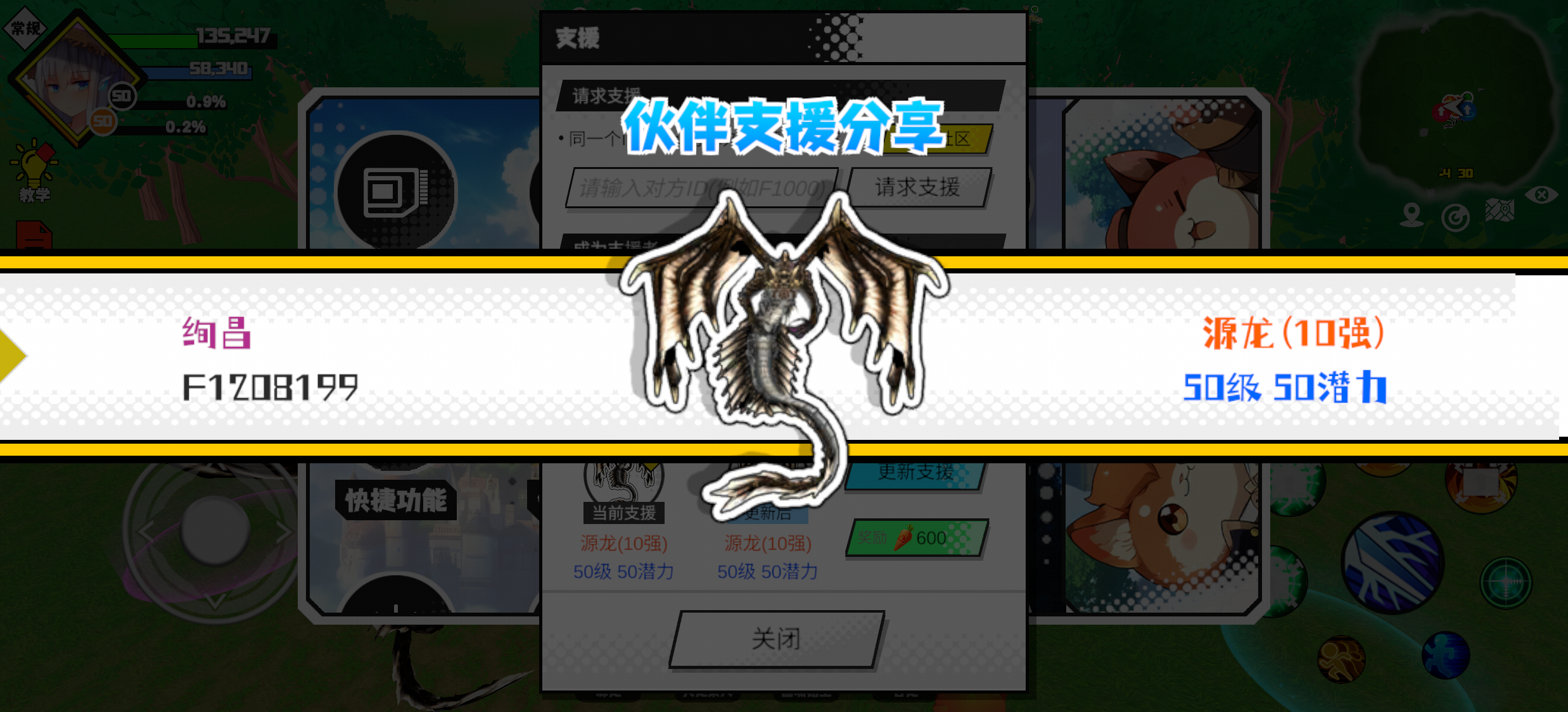 支援者:䝜醚(F1009412)如果遇到困难,可以召唤我的宠物帮忙,召唤方法是进入地图后点击左下角的手机功能>支援>输入【F1009412】>就可以召唤我的宠物!我的宠物是蛋壳王(9强)50级 50潜力技能1:火焰破技能2:火焰破技能3:火焰破技能4:火焰破智慧配点:245初阶职业:鬼咒进阶职业:海神#超数据世界