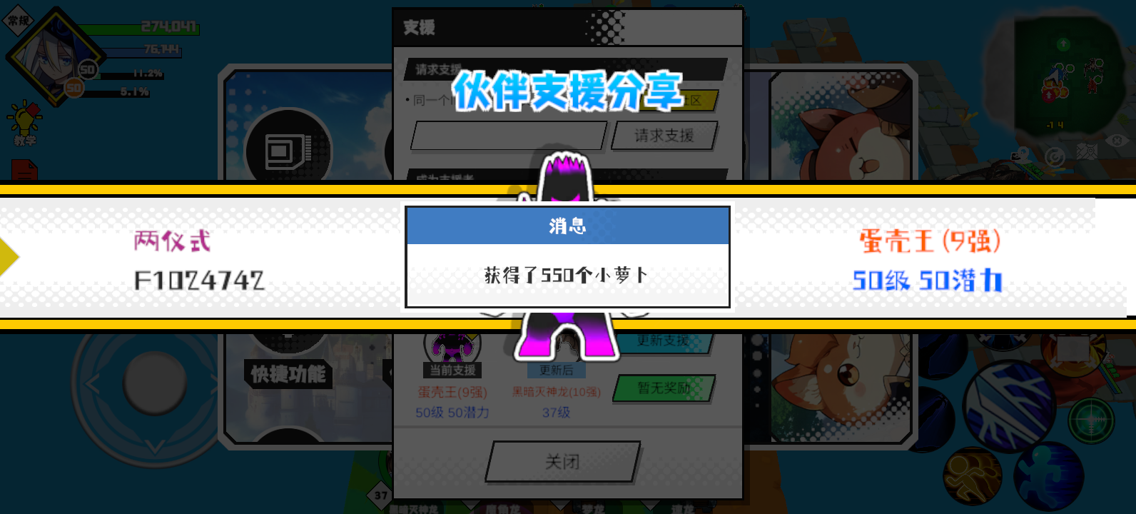 支援者:祀祀小天使(F1058829)如果遇到困难,可以召唤我的宠物帮忙,召唤方法是进入地图后点击左下角的手机功能>支援>输入【F1058829】>就可以召唤我的宠物!我的宠物是蛋壳王(9强)50级 50潜力技能1:黑魔破技能2:黑魔破技能3:黑魔破技能4:黑魔破智慧配点:245初阶职业:鬼咒进阶职业:气宗#超数据世界