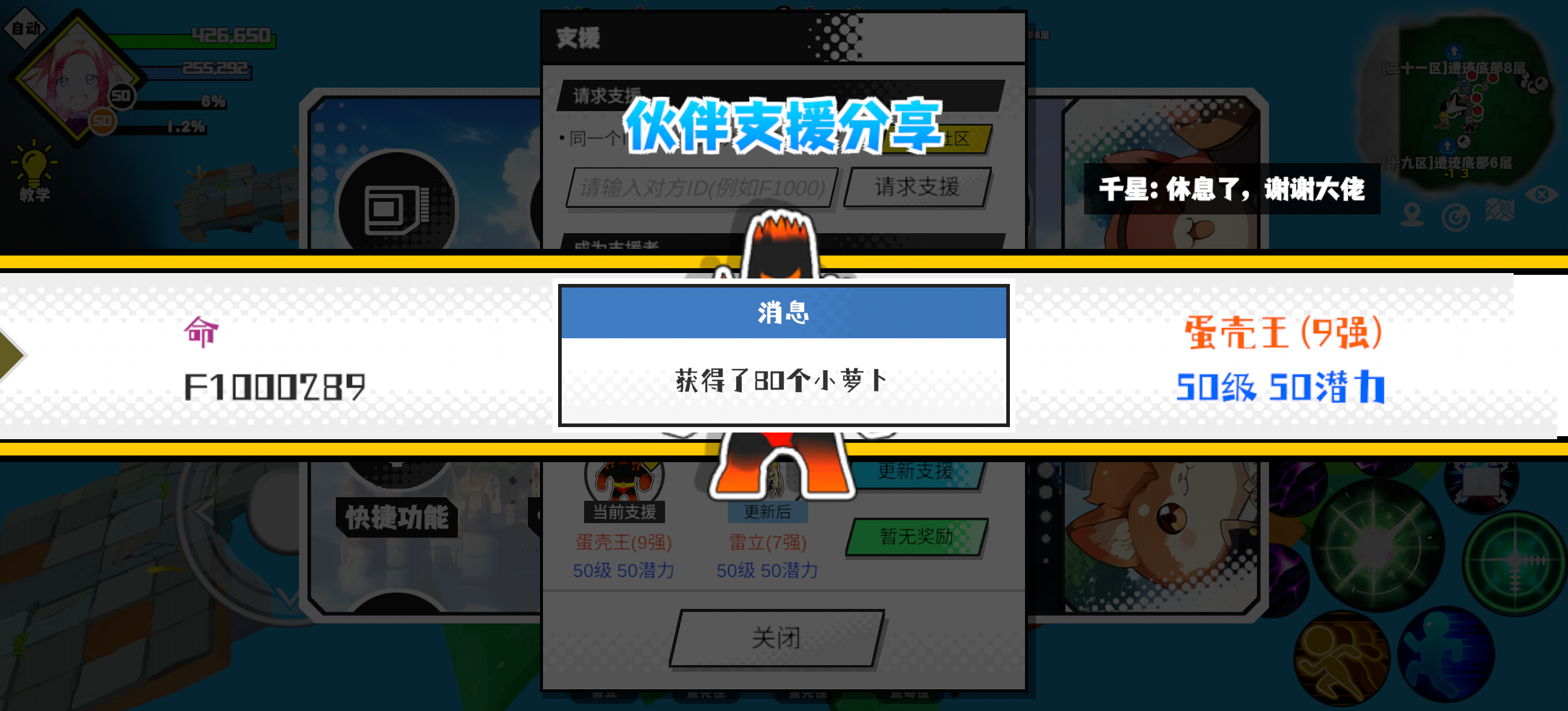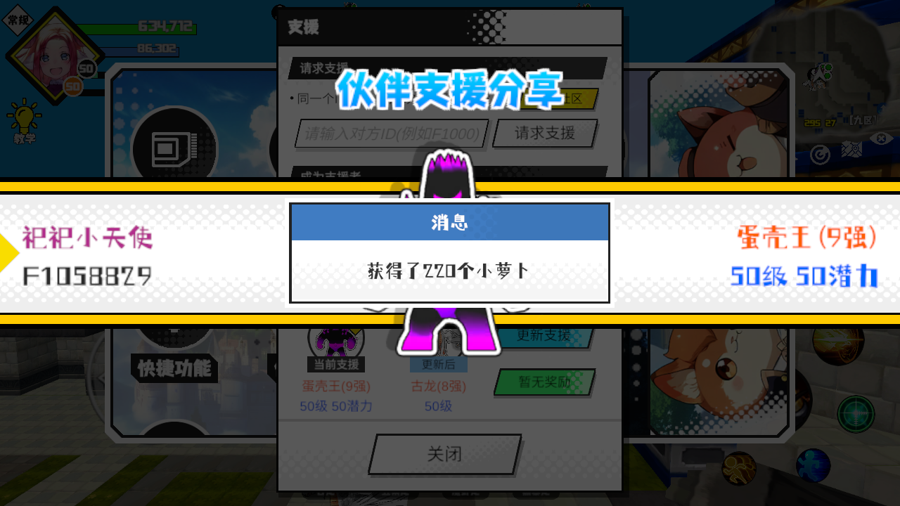 支援者:䝜醚(F1009412)如果遇到困难,可以召唤我的宠物帮忙,召唤方法是进入地图后点击左下角的手机功能>支援>输入【F1009412】>就可以召唤我的宠物!我的宠物是蛋壳王(9强)50级 50潜力技能1:火焰破技能2:火焰破技能3:火焰破技能4:火焰破智慧配点:245初阶职业:鬼咒进阶职业:海神#超数据世界 #超数据世界 #超数据世界 #超数据世界 #超数据世界