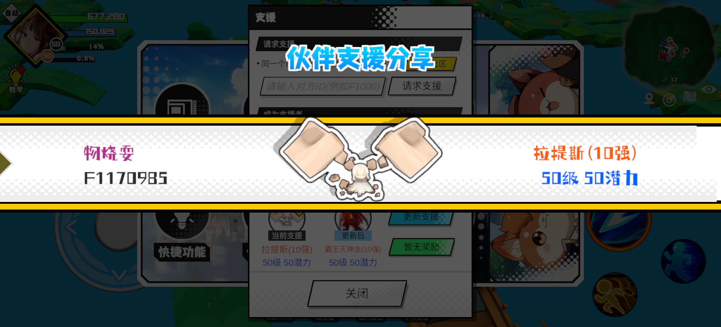 支援者:物烧耍(F1170985)如果遇到困难,可以召唤我的宠物帮忙,召唤方法是进入地图后点击左下角的手机功能>支援>输入【F1170985】>就可以召唤我的宠物!我的宠物是拉提斯(10强)50级 50潜力技能1:智慧1技能2:超级地焰术技能3:超级地焰术技能4:超级地焰术智慧配点:245初阶职业:时导进阶职业:海神#超数据世界