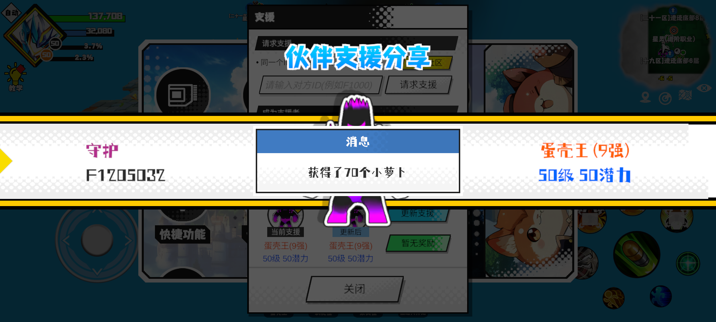 支援者:铭(F1175439)如果遇到困难,可以召唤我的宠物帮忙,召唤方法是进入地图后点击左下角的手机功能>支援>输入【F1175439】>就可以召唤我的宠物!我的宠物是蛋壳王(9强)50级 50潜力技能1:黑魔破技能2:黑魔破技能3:黑魔破技能4:黑魔破智慧配点:245初阶职业:魔导进阶职业:海神#超数据世界 #超数据世界