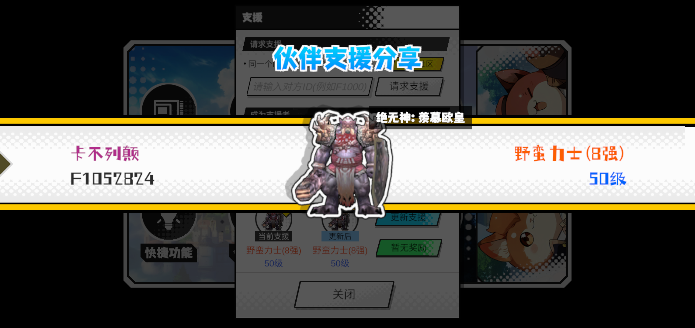 支援者:卡不列颠(F1052824)如果遇到困难,可以召唤我的宠物帮忙,召唤方法是进入地图后点击左下角的手机功能>支援>输入【F1052824】>就可以召唤我的宠物!我的宠物是野蛮力士(8强)50级技能1:神力技能2:神力技能3:雷破击技能4:雷破击力量配点:245初阶职业:霸者进阶职业:狂战#超数据世界