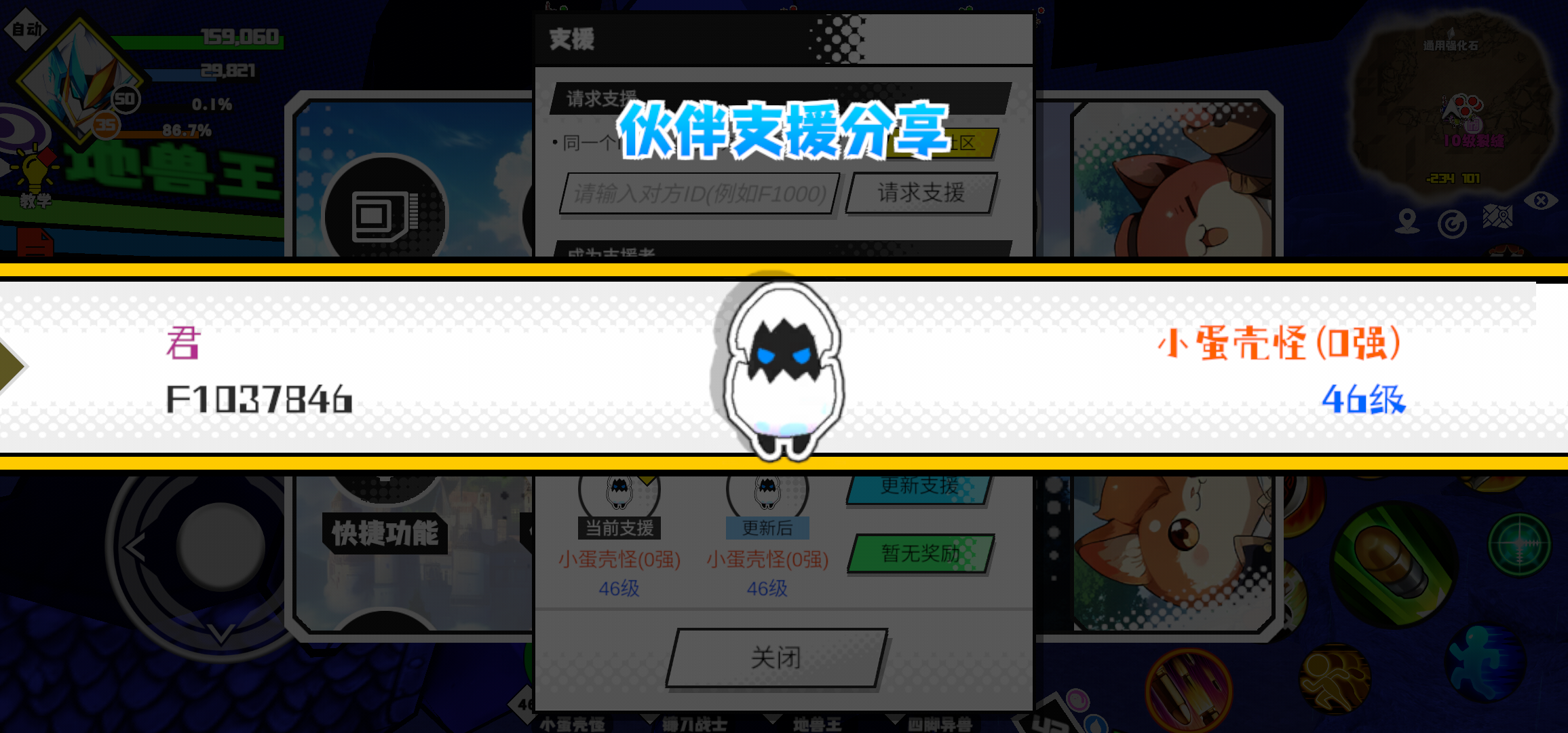支援者:君(F1037846)如果遇到困难,可以召唤我的宠物帮忙,召唤方法是进入地图后点击左下角的手机功能>支援>输入【F1037846】>就可以召唤我的宠物!我的宠物是小蛋壳怪(0强)46级技能1:海灵之怒技能2:寒冰裂技能3:破土技能4:迅雷术初阶职业:无进阶职业:无#超数据世界