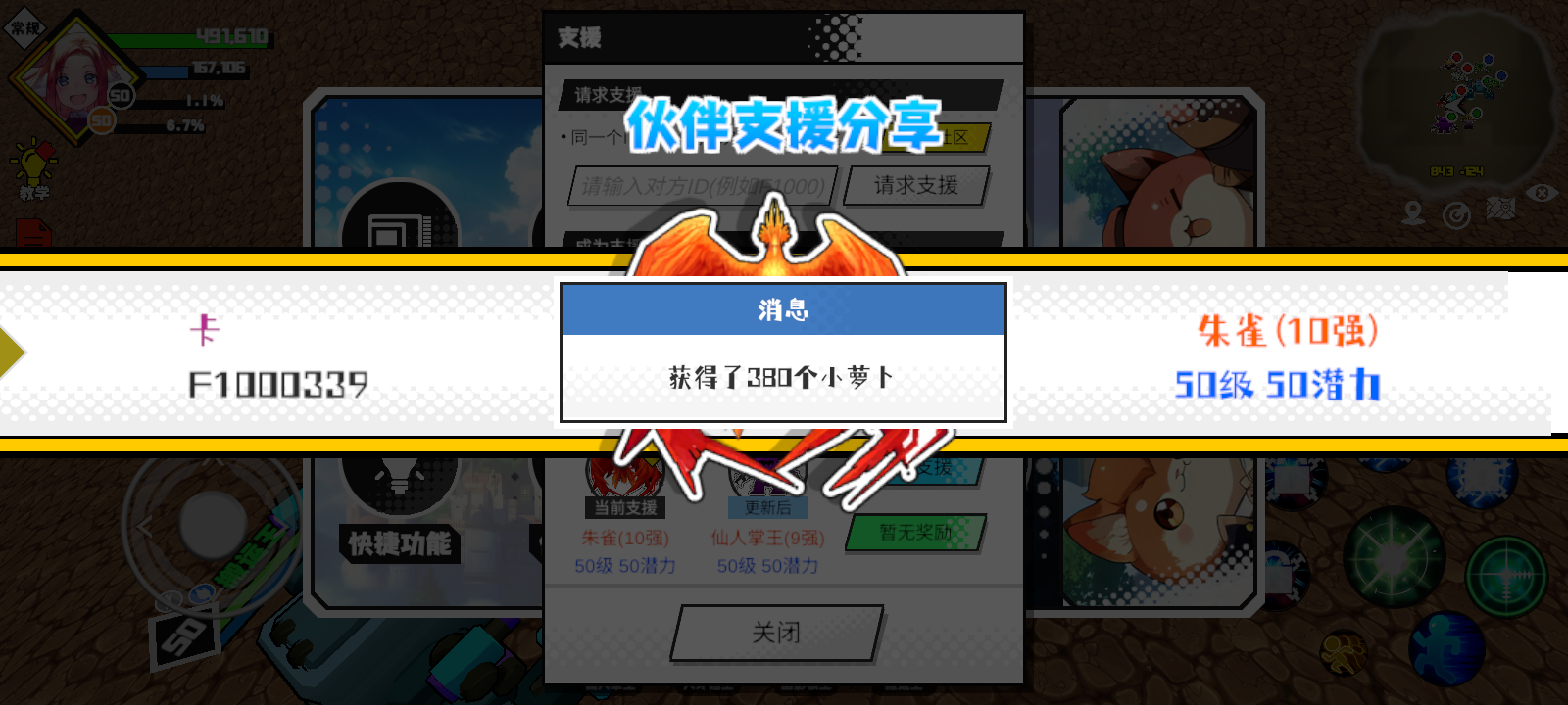支援者:卡(F1000339)如果遇到困难,可以召唤我的宠物帮忙,召唤方法是进入地图后点击左下角的手机功能>支援>输入【F1000339】>就可以召唤我的宠物!我的宠物是朱雀(10强)50级 50潜力技能1:狂风咆哮击技能2:凤凰螺旋击技能3:火之意技能4:强攻力量配点:244敏捷配点:1初阶职业:暗猎进阶职业:狂战#超数据世界 #超数据世界
