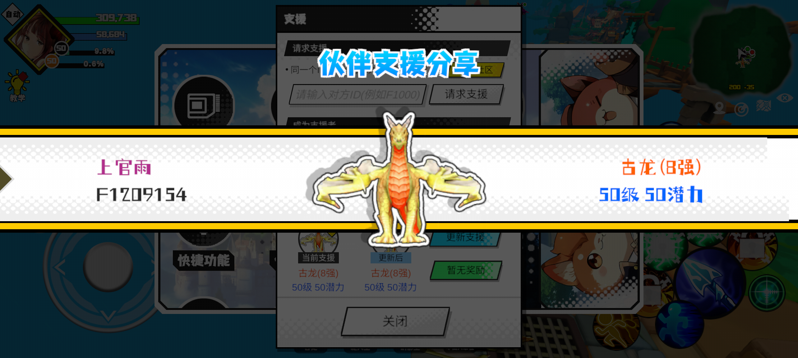支援者:䝜醚(F1009412)如果遇到困难,可以召唤我的宠物帮忙,召唤方法是进入地图后点击左下角的手机功能>支援>输入【F1009412】>就可以召唤我的宠物!我的宠物是蛋壳王(9强)50级 50潜力技能1:火焰破技能2:火焰破技能3:火焰破技能4:火焰破智慧配点:245初阶职业:鬼咒进阶职业:海神#超数据世界 #超数据世界