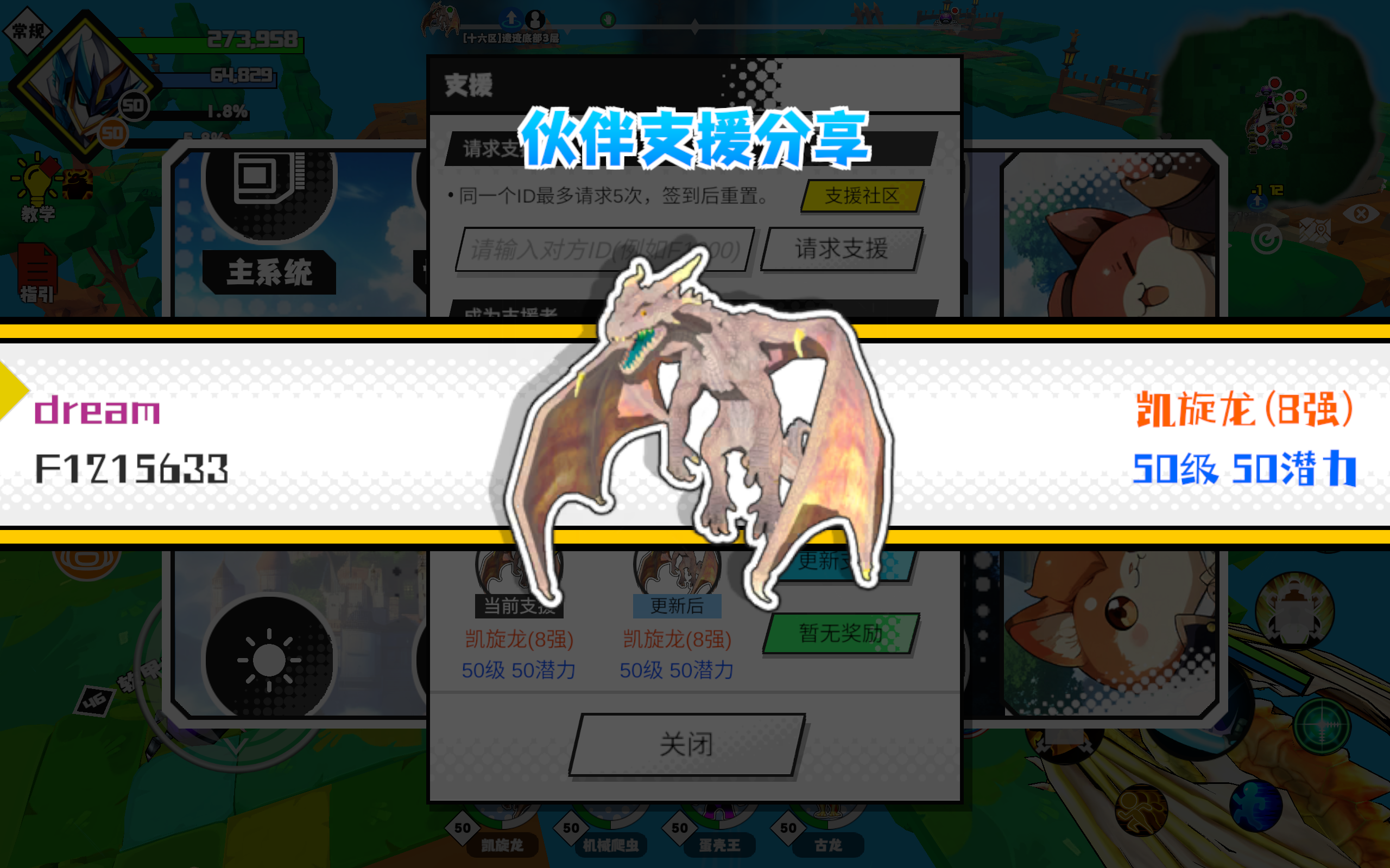 支援者:dream(F1215633)如果遇到困难,可以召唤我的宠物帮忙,召唤方法是进入地图后点击左下角的手机功能>支援>输入【F1215633】>就可以召唤我的宠物!我的宠物是凯旋龙(8强)50级 50潜力技能1:黑暗升龙击技能2:超强刺击技能3:魔源技能4:火之意力量配点:135敏捷配点:100体质配点:10初阶职业:暗猎进阶职业:狂战#超数据世界