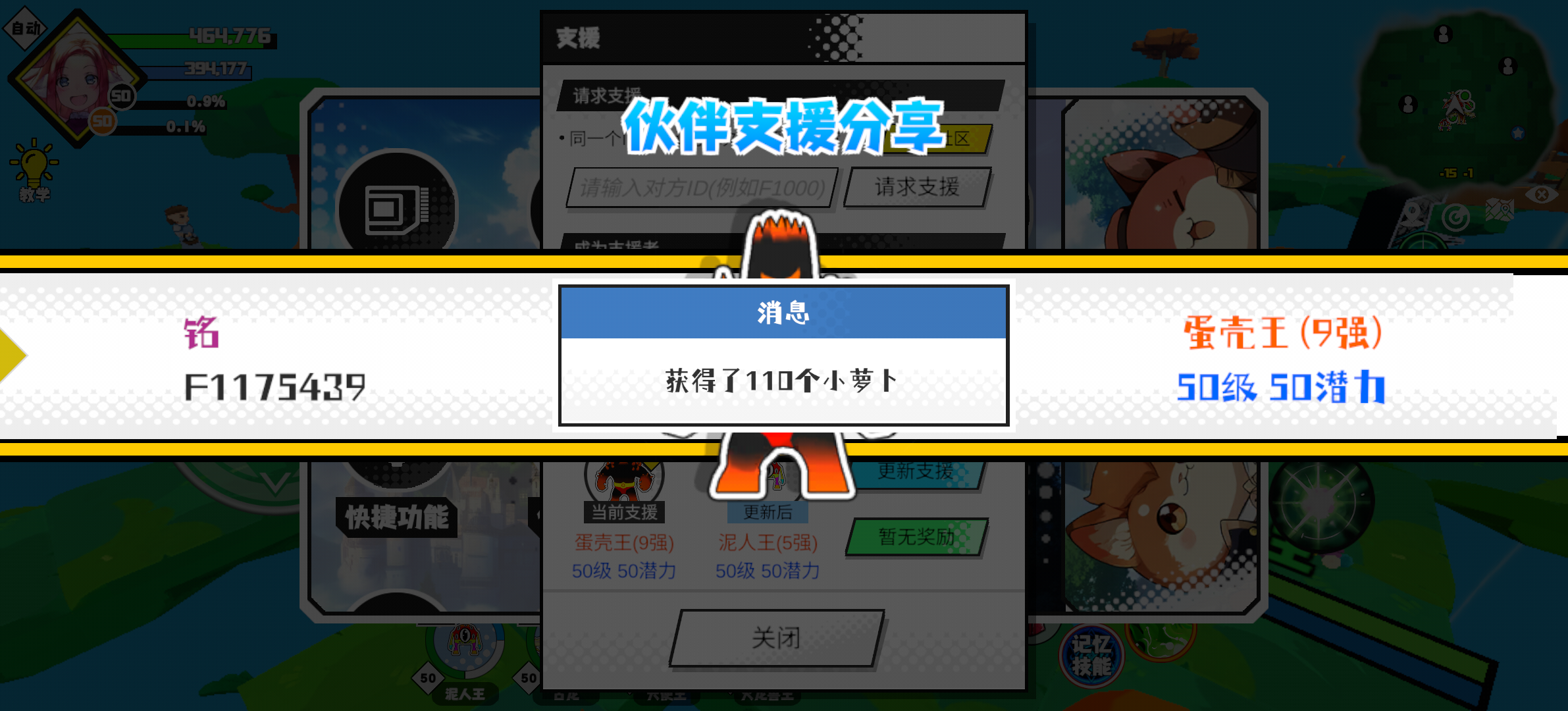 支援者:铭(F1175439)如果遇到困难,可以召唤我的宠物帮忙,召唤方法是进入地图后点击左下角的手机功能>支援>输入【F1175439】>就可以召唤我的宠物!我的宠物是蛋壳王(9强)50级 50潜力技能1:黑魔破技能2:黑魔破技能3:黑魔破技能4:黑魔破智慧配点:245初阶职业:魔导进阶职业:海神#超数据世界 #超数据世界