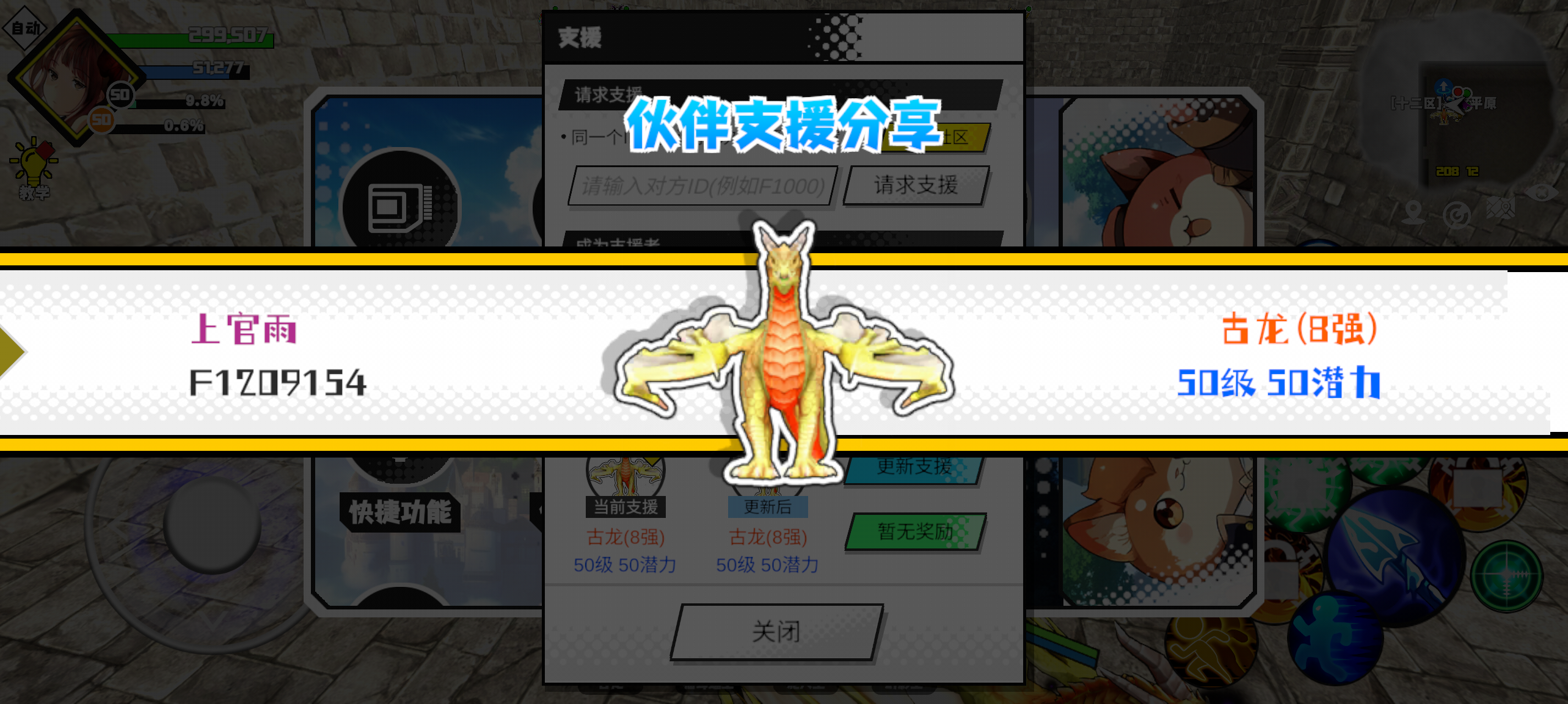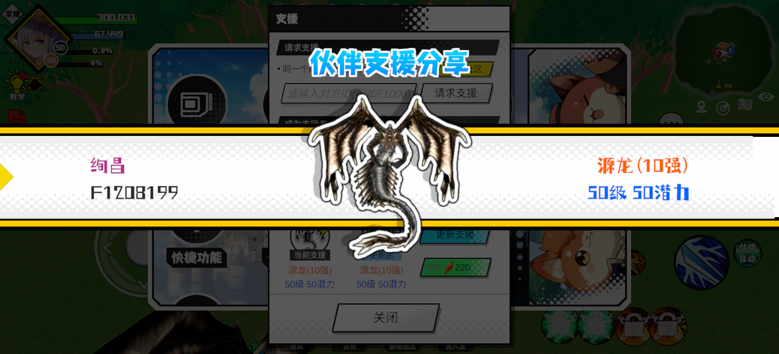 #超数据世界 支援者:绚昌(F1208199)如果遇到困难,可以召唤我的宠物帮忙,召唤方法是进入地图后点击左下角的手机功能>支援>输入【F1208199】>就可以召唤我的宠物!我的宠物是源龙(10强)50级 50潜力技能1:黑暗升龙击技能2:黑暗升龙击技能3:火之意技能4:魔源力量配点:145敏捷配点:100初阶职业:暗猎进阶职业:无极