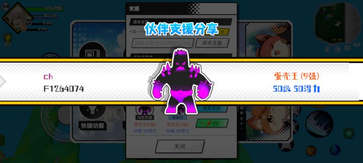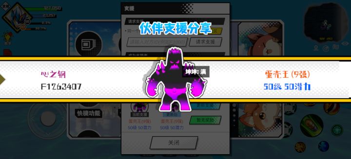 #超数据世界 支援者:ch(F1264074)如果遇到困难,可以召唤我的宠物帮忙,召唤方法是进入地图后点击左下角的手机功能>支援>输入【F1264074】>就可以召唤我的宠物!我的宠物是蛋壳王(9强)50级 50潜力技能1:魔炮十连技能2:黑魔破技能3:黑魔破技能4:黑魔破智慧配点:245初阶职业:时导进阶职业:气宗