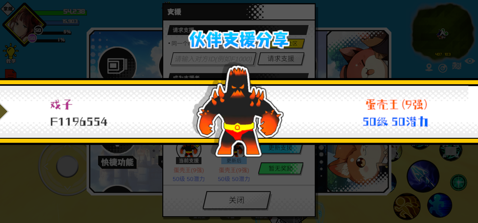#超数据世界 支援者:䝜醚(F1009412)如果遇到困难,可以召唤我的宠物帮忙,召唤方法是进入地图后点击左下角的手机功能>支援>输入【F1009412】>就可以召唤我的宠物!我的宠物是蛋壳王(9强)50级 50潜力技能1:火焰破技能2:火焰破技能3:火焰破技能4:火焰破智慧配点:245初阶职业:鬼咒进阶职业:海神