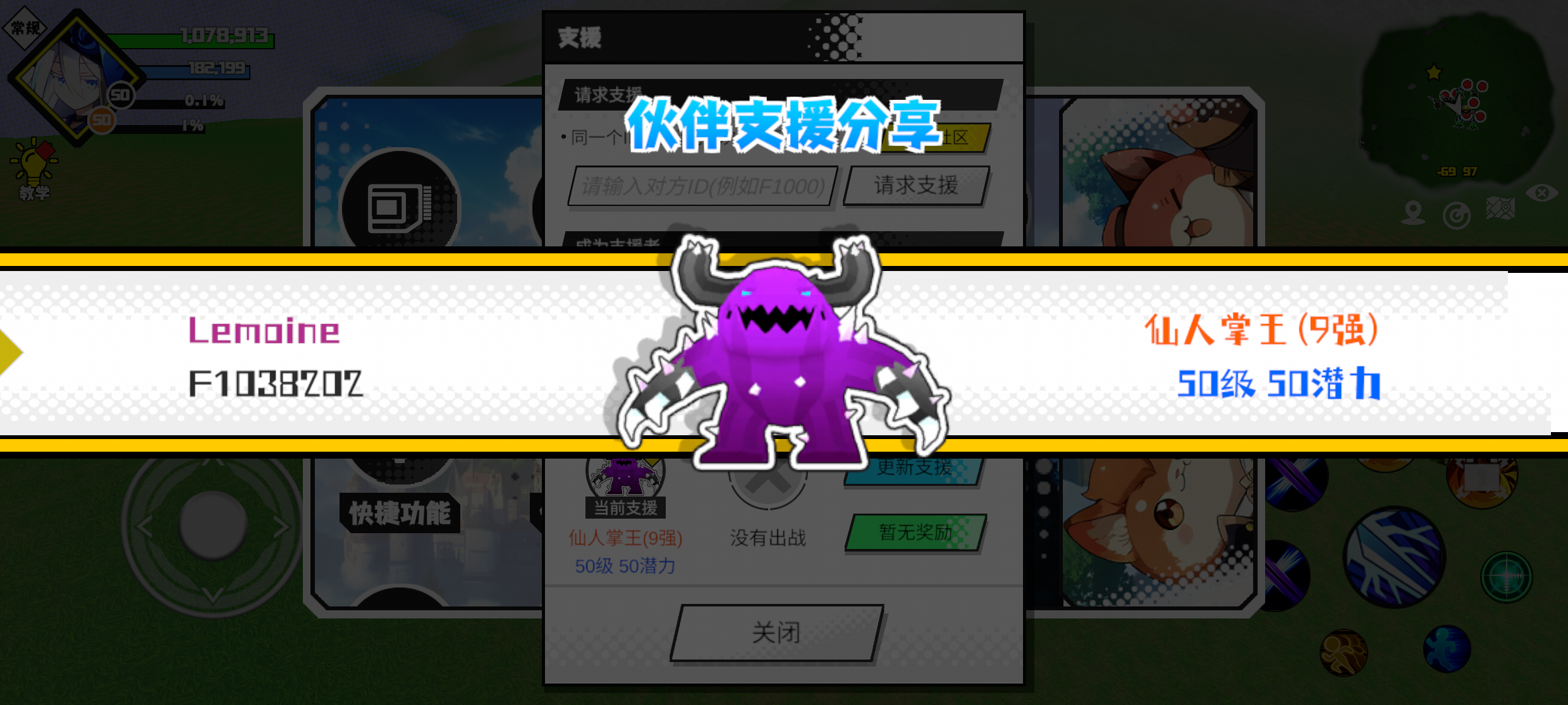 支援者:Lemoine(F1038202)如果遇到困难,可以召唤我的宠物帮忙,召唤方法是进入地图后点击左下角的手机功能>支援>输入【F1038202】>就可以召唤我的宠物!我的宠物是仙人掌王(9强)50级 50潜力技能1:智慧技能2:八雷神术技能3:八雷神术技能4:八雷神术智慧配点:245初阶职业:鬼咒进阶职业:魔灭#超数据世界