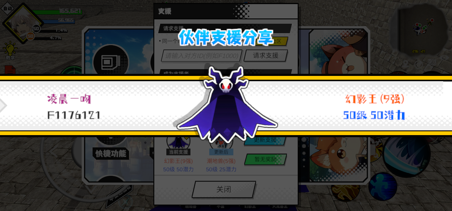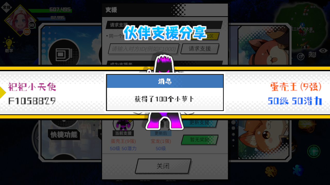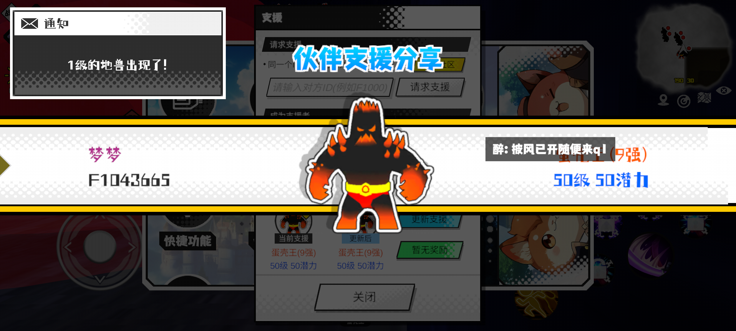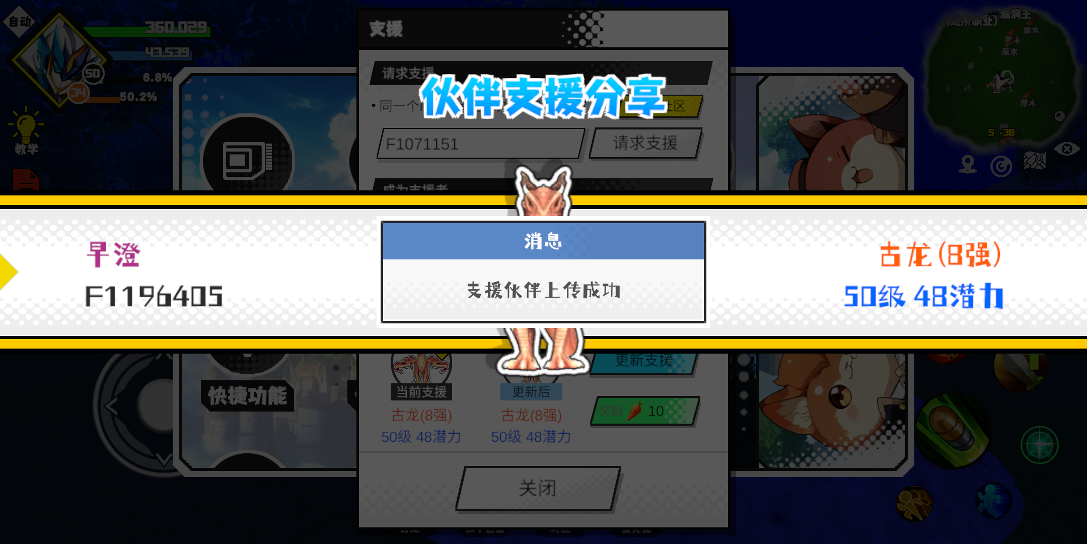 支援者:夜猫子(F1196094)如果遇到困难,可以召唤我的宠物帮忙,召唤方法是进入地图后点击左下角的手机功能>支援>输入【F1196094】>就可以召唤我的宠物!我的宠物是蛋壳王(9强)50级 50潜力技能1:星火之泪技能2:物理保护1技能3:炎之呼吸技能4:钢火术智慧配点:245初阶职业:鬼咒进阶职业:魔灭#超数据世界
