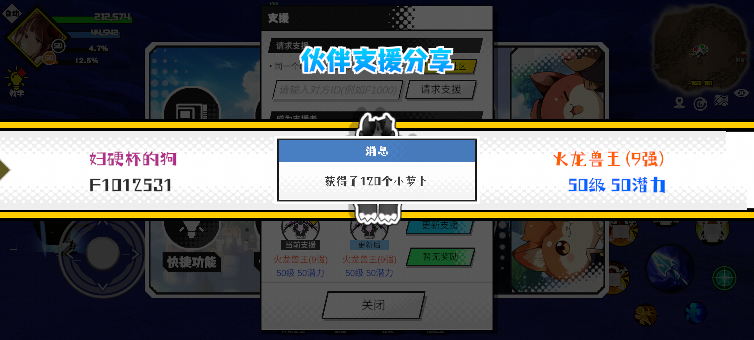 支援者:妇硬杯的狗(F1012531)如果遇到困难,可以召唤我的宠物帮忙,召唤方法是进入地图后点击左下角的手机功能>支援>输入【F1012531】>就可以召唤我的宠物!我的宠物是火龙兽王(9强)50级 50潜力技能1:异空术技能2:异空术技能3:异空术技能4:魔导之力敏捷配点:45智慧配点:200初阶职业:鬼咒进阶职业:魔灭#超数据世界