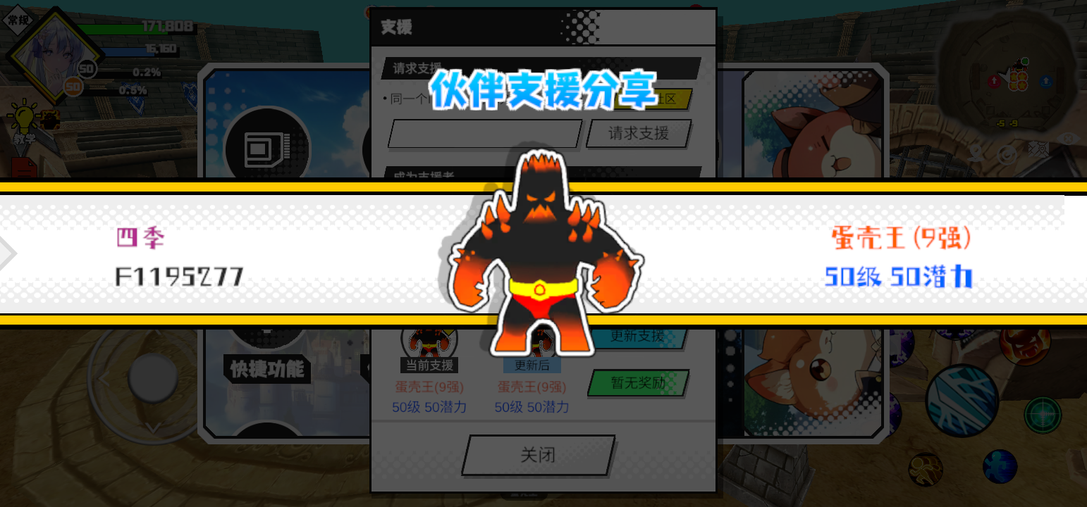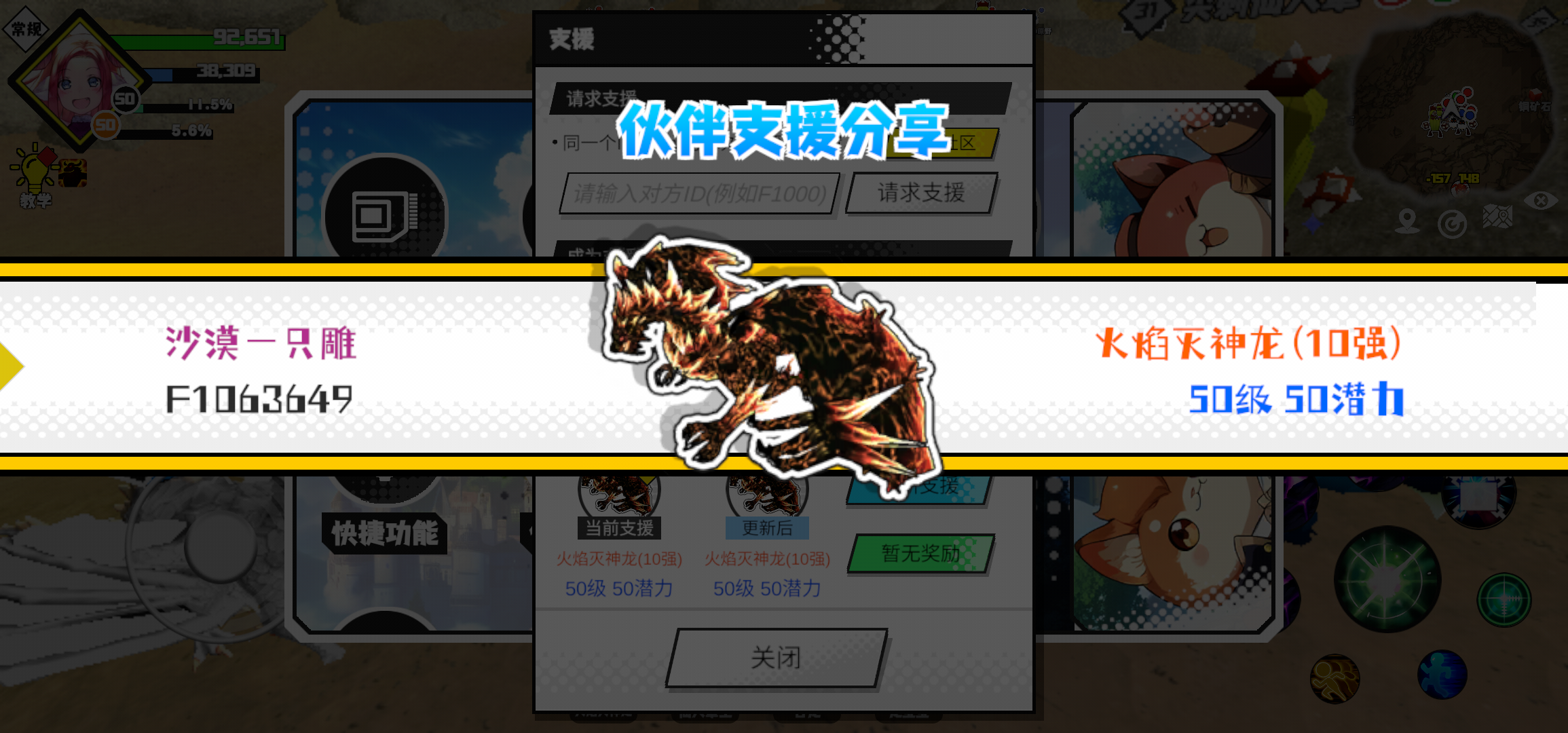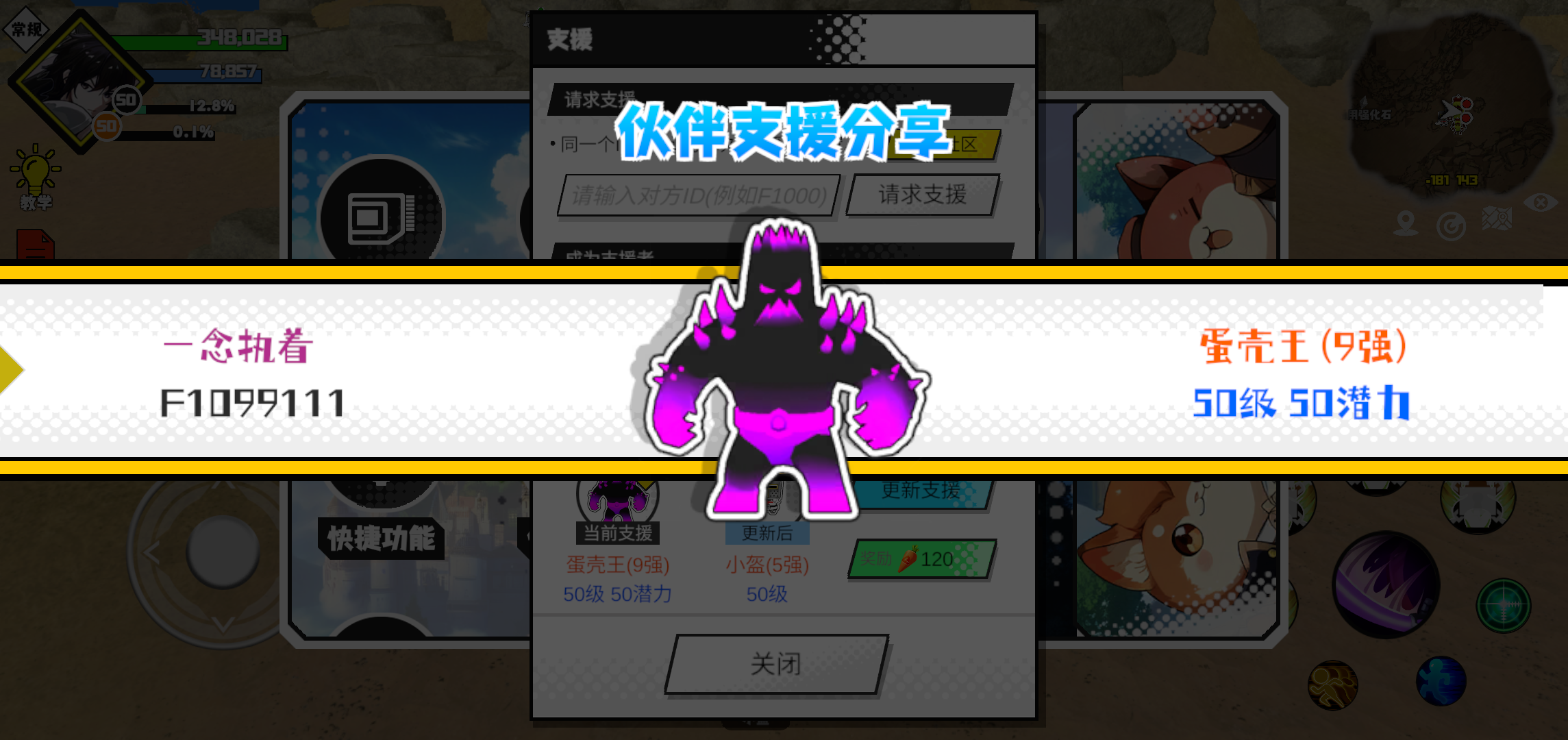 支援者:四季(F1195277)如果遇到困难,可以召唤我的宠物帮忙,召唤方法是进入地图后点击左下角的手机功能>支援>输入【F1195277】>就可以召唤我的宠物!我的宠物是蛋壳王(9强)50级 50潜力技能1:火焰破技能2:火焰破技能3:火焰破技能4:火焰破智慧配点:245初阶职业:鬼咒进阶职业:海神#超数据世界 #超数据世界
