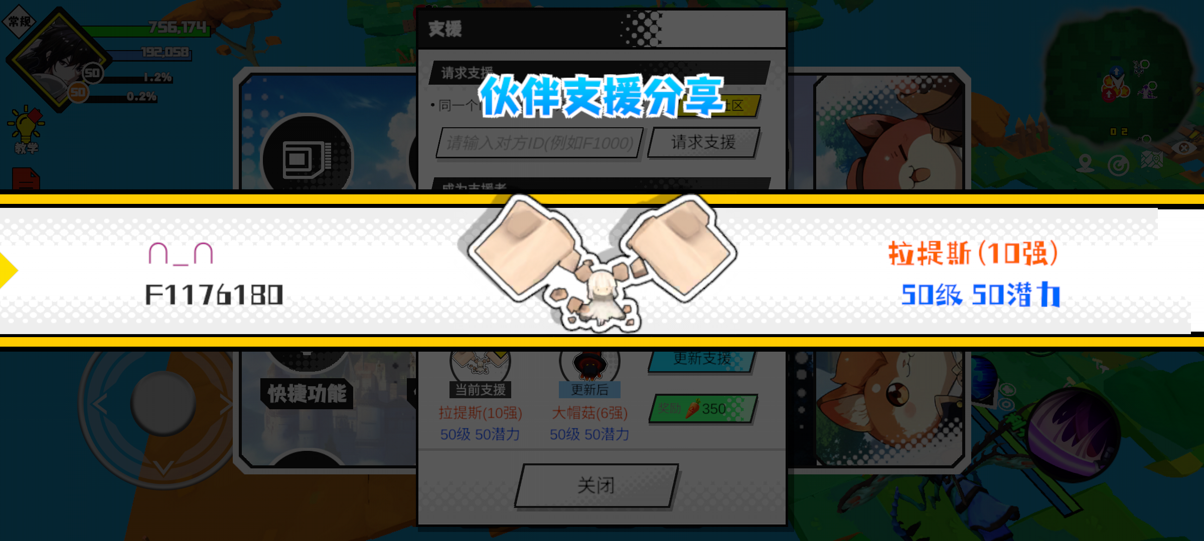 支援者:铭(F1175439)如果遇到困难,可以召唤我的宠物帮忙,召唤方法是进入地图后点击左下角的手机功能>支援>输入【F1175439】>就可以召唤我的宠物!我的宠物是蛋壳王(9强)50级 50潜力技能1:黑魔破技能2:黑魔破技能3:黑魔破技能4:黑魔破智慧配点:245初阶职业:魔导进阶职业:海神#超数据世界
