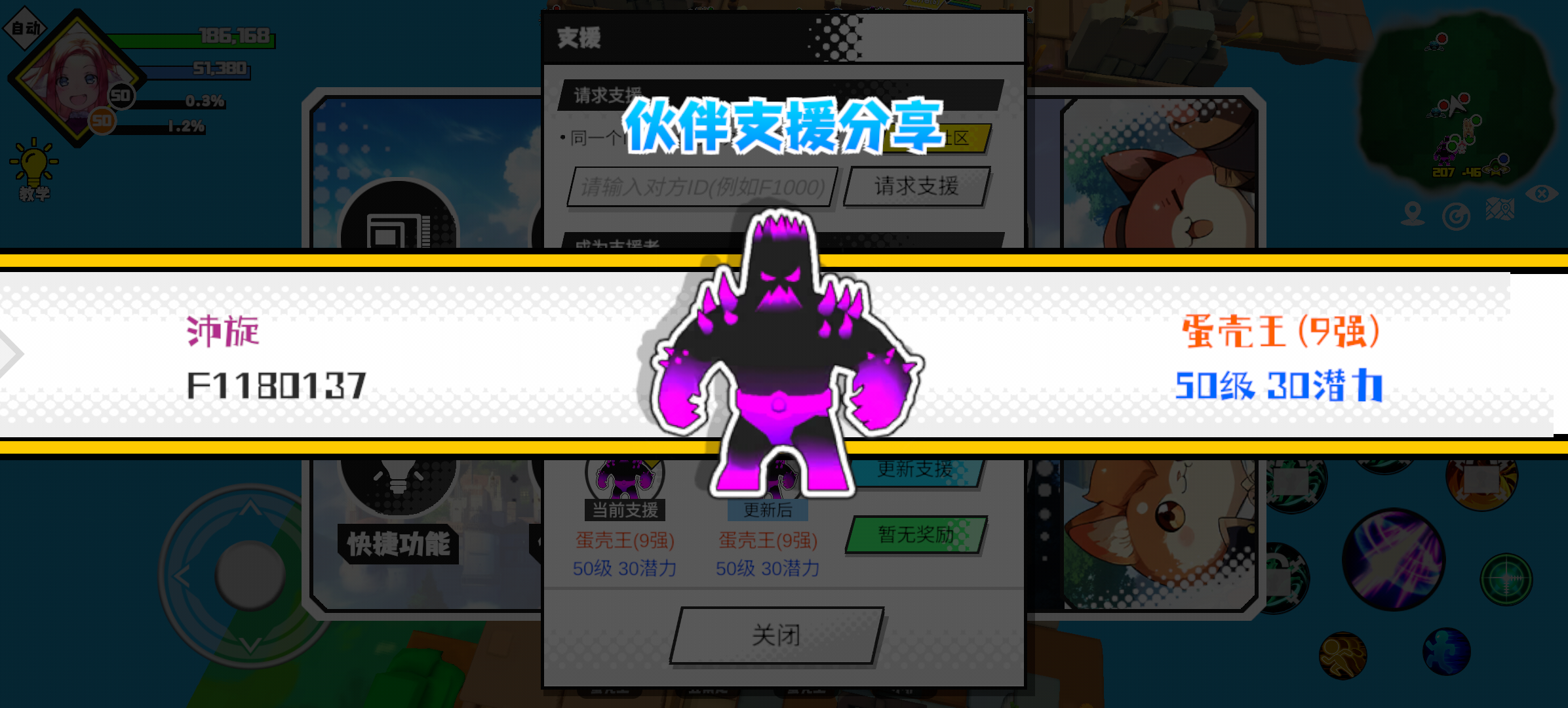 支援者:沛旋(F1180137)如果遇到困难,可以召唤我的宠物帮忙,召唤方法是进入地图后点击左下角的手机功能>支援>输入【F1180137】>就可以召唤我的宠物!我的宠物是蛋壳王(9强)50级 30潜力技能1:黑魔破技能2:黑魔破技能3:黑魔破技能4:黑魔破智慧配点:245初阶职业:鬼咒进阶职业:海神#超数据世界