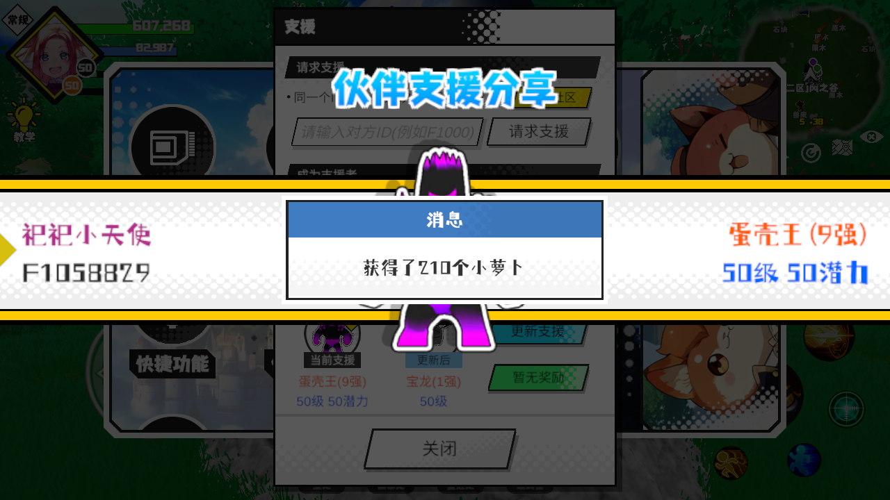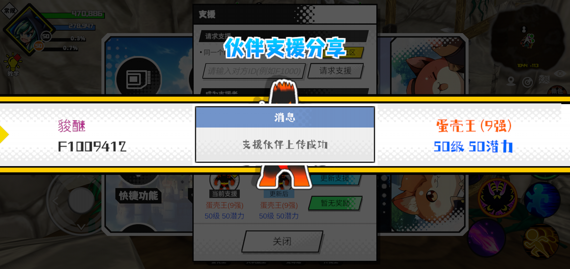 支援者:祀祀小天使(F1058829)如果遇到困难,可以召唤我的宠物帮忙,召唤方法是进入地图后点击左下角的手机功能>支援>输入【F1058829】>就可以召唤我的宠物!我的宠物是蛋壳王(9强)50级 50潜力技能1:黑魔破技能2:黑魔破技能3:黑魔破技能4:黑魔破智慧配点:245初阶职业:鬼咒进阶职业:气宗#超数据世界