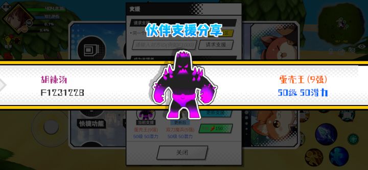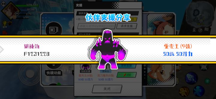 支援者:胡辣汤(F1231228)如果遇到困难,可以召唤我的宠物帮忙,召唤方法是进入地图后点击左下角的手机功能>支援>输入【F1231228】>就可以召唤我的宠物!我的宠物是蛋壳王(9强)50级 50潜力技能1:魔源技能2:黑魔破技能3:黑魔破技能4:黑魔破智慧配点:245初阶职业:鬼咒进阶职业:海神#超数据世界