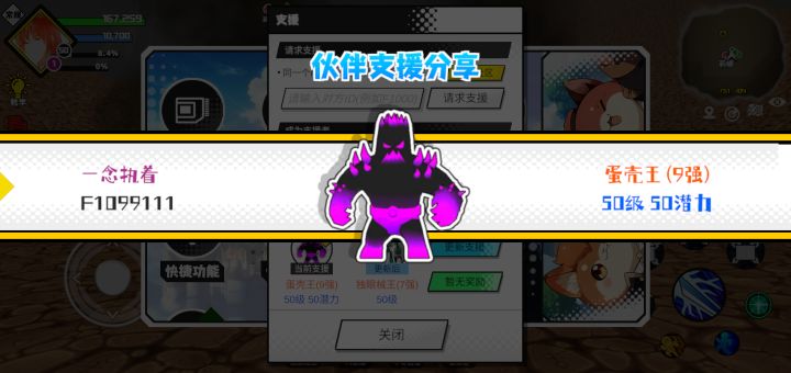 支援者:谷香(F1250407)如果遇到困难,可以召唤我的宠物帮忙,召唤方法是进入地图后点击左下角的手机功能>支援>输入【F1250407】>就可以召唤我的宠物!我的宠物是蛋壳王(9强)50级 50潜力技能1:智慧技能2:智慧技能3:黑魔破技能4:黑魔破智慧配点:245初阶职业:魔导进阶职业:星灵#超数据世界