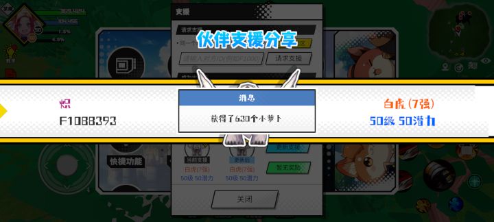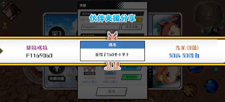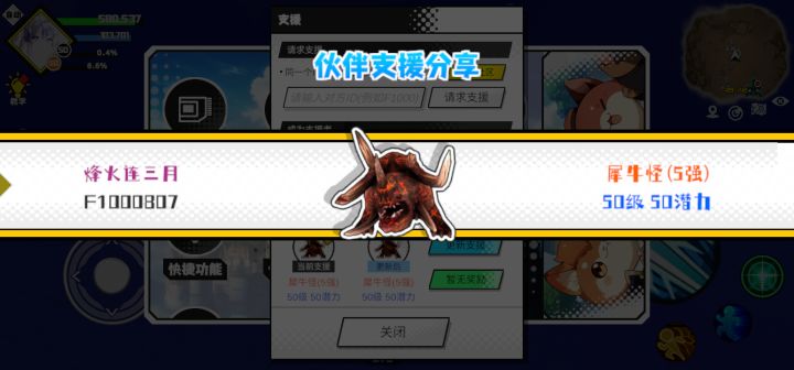 支援者:烽火连三月(F1000807)如果遇到困难,可以召唤我的宠物帮忙,召唤方法是进入地图后点击左下角的手机功能>支援>输入【F1000807】>就可以召唤我的宠物!我的宠物是犀牛怪(5强)50级 50潜力技能1:水灵技能2:群体吸引技能3:治疗心得3技能4:铁之护体质配点:245初阶职业:龙目进阶职业:麟目#超数据世界