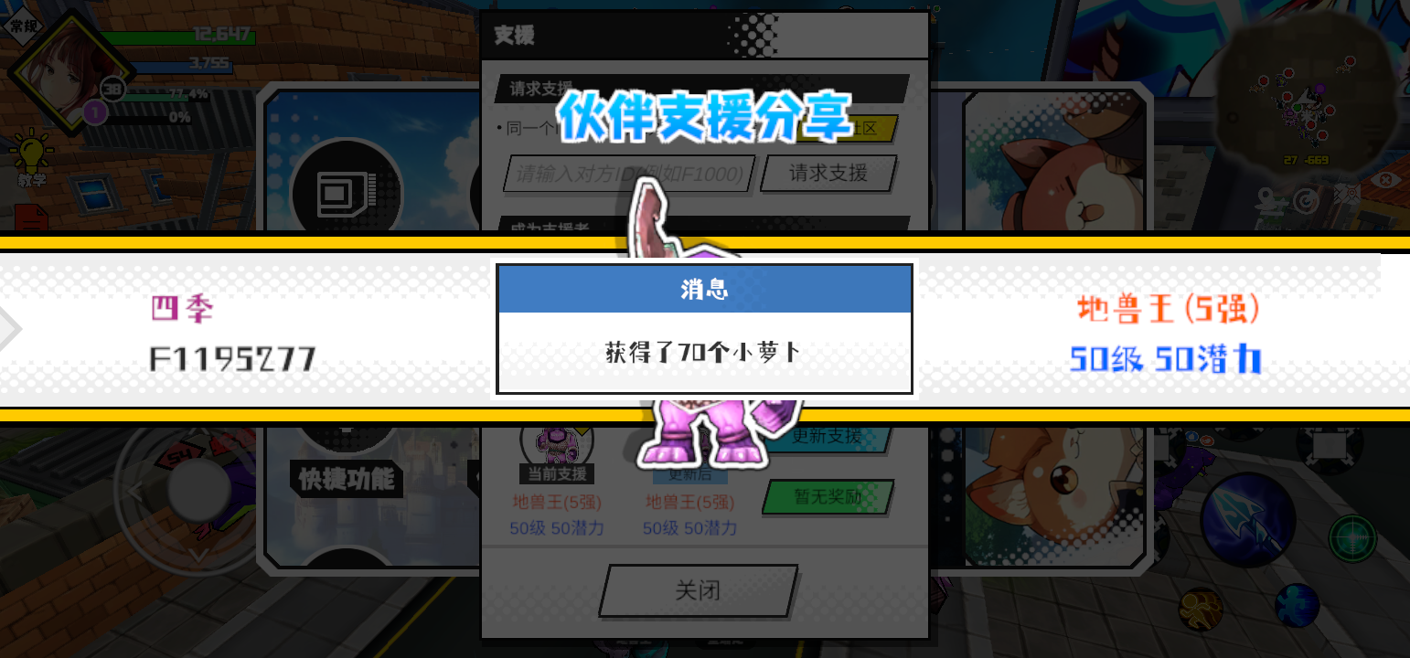 潜力拉满 祝你腾飞支援者:人上人(F1173139)如果遇到困难,可以召唤我的宠物帮忙,召唤方法是进入地图后点击左下角的手机功能>支援>输入【F1173139】>就可以召唤我的宠物!我的宠物是蛋壳王(9强)50级 50潜力技能1:魔炮十连技能2:黑魔破技能3:黑魔破技能4:黑魔破智慧配点:245初阶职业:鬼咒进阶职业:海神#超数据世界