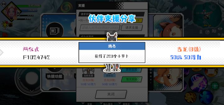 支援者:胡搞瞎搞(F1169060)如果遇到困难,可以召唤我的宠物帮忙,召唤方法是进入地图后点击左下角的手机功能>支援>输入【F1169060】>就可以召唤我的宠物!我的宠物是古龙(8强)50级 50潜力技能1:魔源技能2:火之意技能3:凤凰螺旋击技能4:凤凰螺旋击力量配点:215敏捷配点:30初阶职业:暗猎进阶职业:无极#超数据世界