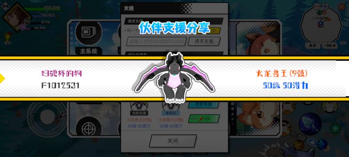 支援者:妇硬杯的狗(F1012531)如果遇到困难,可以召唤我的宠物帮忙,召唤方法是进入地图后点击左下角的手机功能>支援>输入【F1012531】>就可以召唤我的宠物!我的宠物是火龙兽王(9强)50级 50潜力技能1:异空术技能2:异空术技能3:异空术技能4:魔导之力敏捷配点:45智慧配点:200初阶职业:鬼咒进阶职业:魔灭#超数据世界