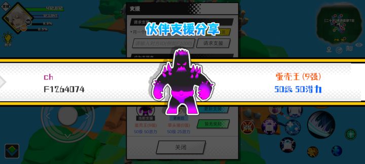 支援者:ch(F1264074)如果遇到困难,可以召唤我的宠物帮忙,召唤方法是进入地图后点击左下角的手机功能>支援>输入【F1264074】>就可以召唤我的宠物!我的宠物是蛋壳王(9强)50级 50潜力技能1:魔炮十连技能2:黑魔破技能3:黑魔破技能4:黑魔破智慧配点:245初阶职业:时导进阶职业:气宗#超数据世界