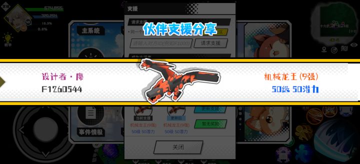 #超数据世界 支援者:设计者·廖(F1260544)如果遇到困难,可以召唤我的宠物帮忙,召唤方法是进入地图后点击左下角的手机功能>支援>输入【F1260544】>就可以召唤我的宠物!我的宠物是机械龙王(9强)50级 50潜力技能1:黑魔破技能2:黑之破坏技能3:魔源技能4:智慧智慧配点:245初阶职业:鬼咒进阶职业:海神